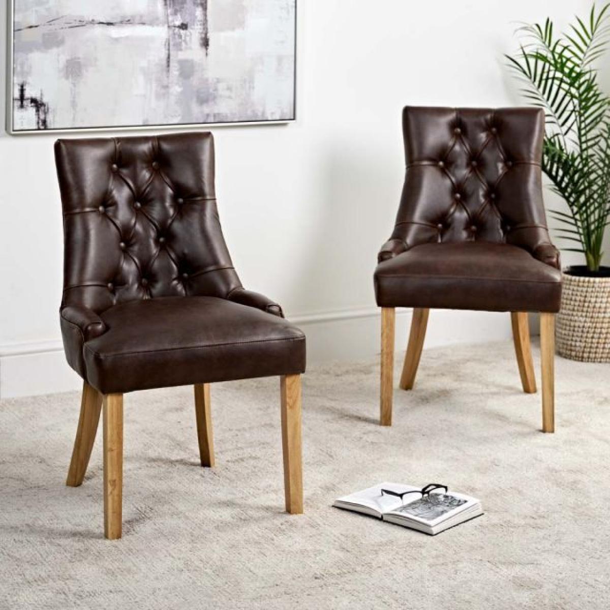 Henry Dining Chair - Chestnut Brown Faux Leather Set of 2