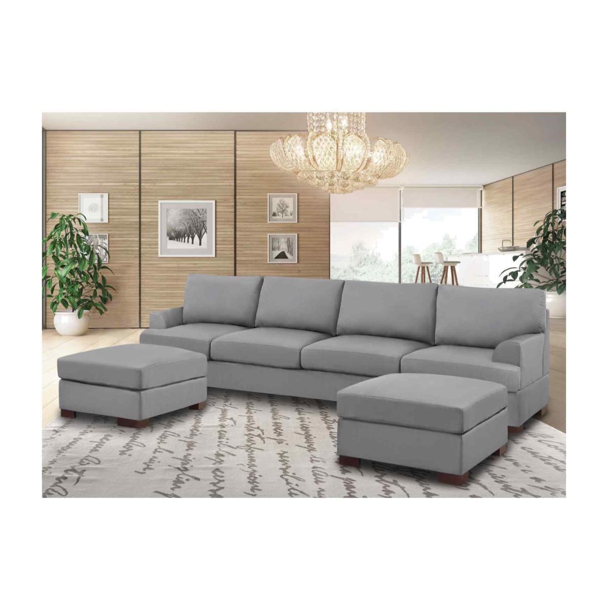 Henry Large U Shape Sofa in Plush Velvet with 2 Footstools - Grey