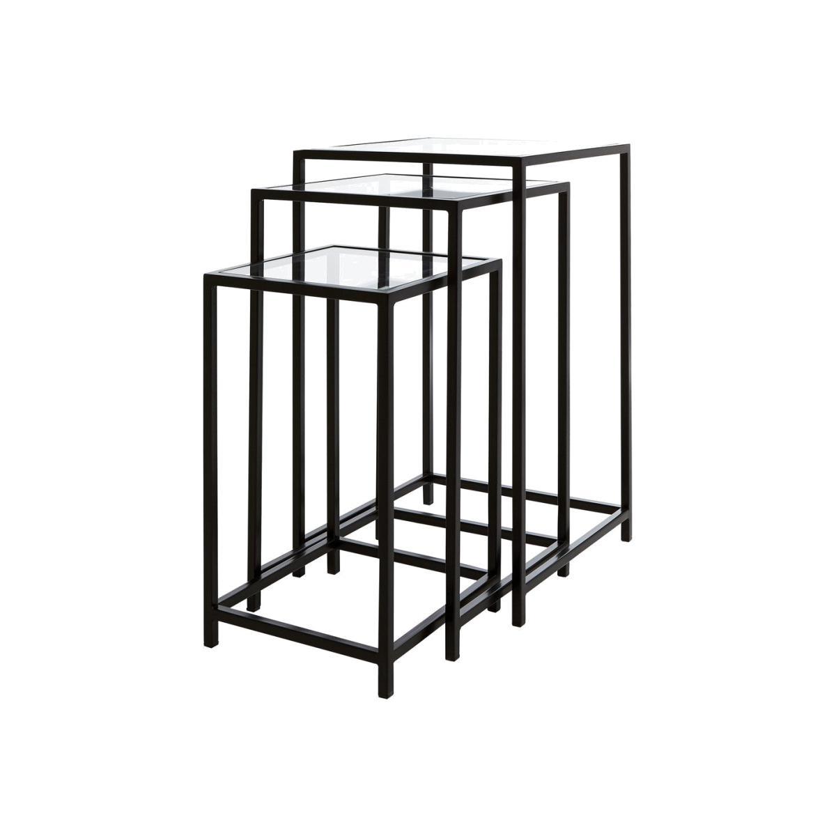 I love these nest tables because they combine sleek, minimalist design with practicality, making them versatile for a variety of interiors. They work particularly well in modern or industrial spaces where clean lines and metallic accents are key, but they can also add a chic touch to more eclectic or contemporary settings. When styling, consider positioning them beside a sofa or armchair to serve as handy surfaces for lamps, books, or decorative objects. Stacking or nesting them adds a dynamic visual element, and their neutral frame means they can easily be paired with a mix of colours and textures. Keep the surfaces uncluttered for a refined look, or dress them up with plants and accessories to personalise the space.