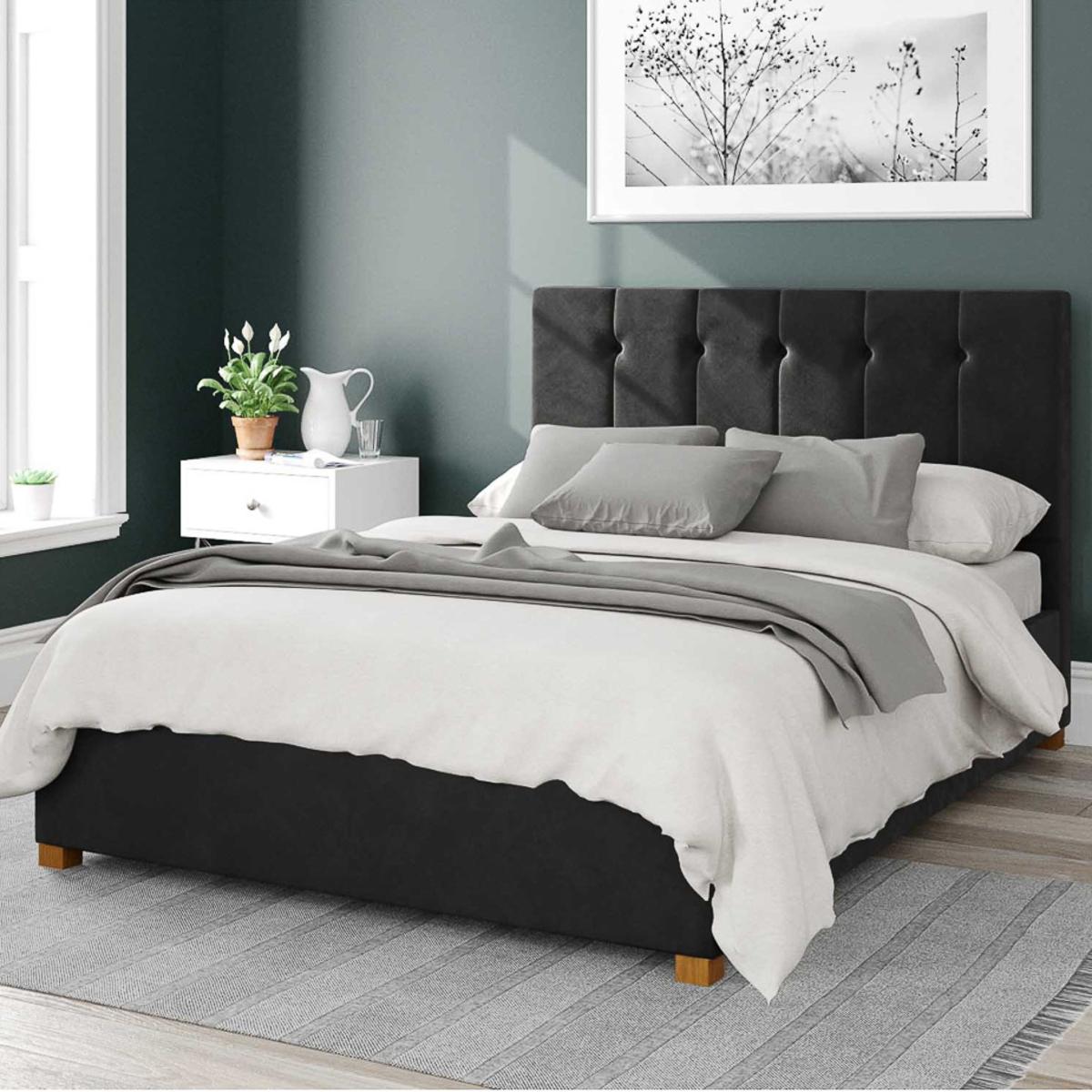 * Large storage area with fabric dust protection sheet* Hands free access to storage (mattresses up to 60kg)* Buttoned headboard design* Plush velvet fabric* Hand upholstered with deep padding* Solid hardwood feet* Manufactured in the UK* Different colour options available Slumber should be sumptuous and so should your bed. This plush velvet bed is sure to add a luxurious touch to your bedroom. The Hepburn Fabric Ottoman Bed has a beautiful buttoned headboard which would be a statement piece in your bedroom. The deep padded headboard boasts a sleek and clean aesthetic, while the stylish solid hard wood feet add a touch of elegance. With its gas lift pistons, the ottoman bed provides ample storage space that can be easily accessed with minimal effort. Once the mechanism is open, it will hold in place, allowing for hands-free access to the spacious storage area. For your added convenience, the bed comes complete with a dust sheet to keep the storage area clean. It's worth noting that the storage area is not a boarded base. To provide you with the ultimate comfort and support, the bed features quality spring slats, ensuring you have a good night's sleep. And with a mechanism capable of lifting a mattress weighing up to 60kg, you can rest easy knowing you're getting the best in practicality and durability. The bed is supplied flat pack, and assembly is made easier with two people. It takes just 1-2 hours to assemble and meets all UK safety standards. We've also gone above and beyond by conducting non-mandatory structural testing, giving you peace of mind knowing your new bed is built to last.