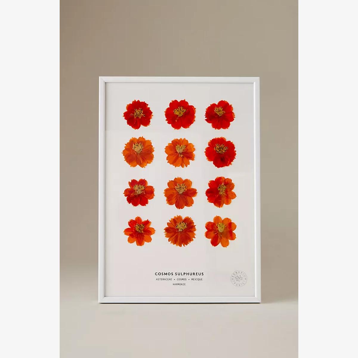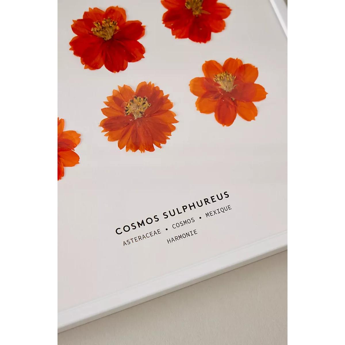 The botanicals' shimmering colours featured in this pressed flower design and print by Herbarium can range from orange and pink to parma and red, cheerfully evoking its Mexican origins. Enjoyed in bouquets, the cosmos flower evokes sincerity when it takes on a yellow hue. Cosmos Sulphureus Pressed Flowers Framed Print by Herbarium in Red at Anthropologie