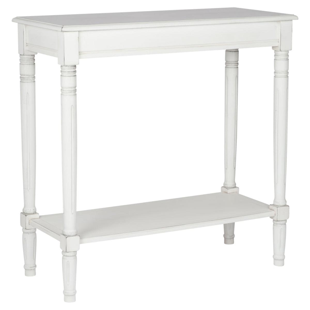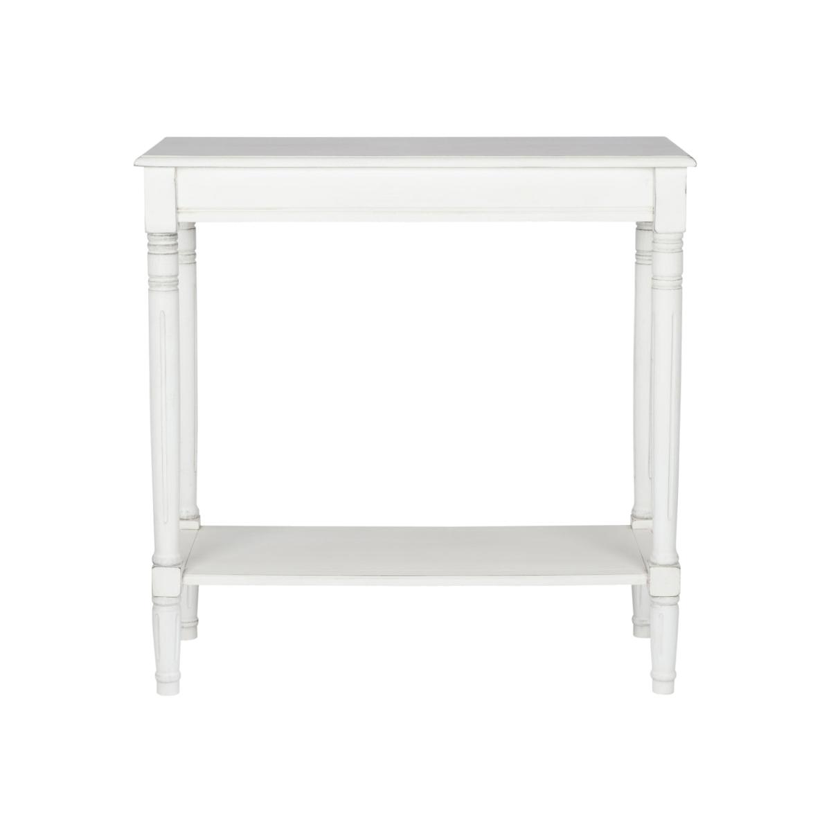 Refined elegance meets everyday functionality in the. Featuring a clean rectangular silhouette and a classic white painted finish, this piece is designed to bring a touch of timeless charm to any room in your home. Crafted from a sturdy blend of pine wood and MDF, the console table showcases traditional turned legs and a spacious lower shelf for added storage or decorative display. Its compact footprint makes it ideal for narrow hallways, entryways, or behind sofas, while the sleek white design complements both modern and vintage-inspired interiors.