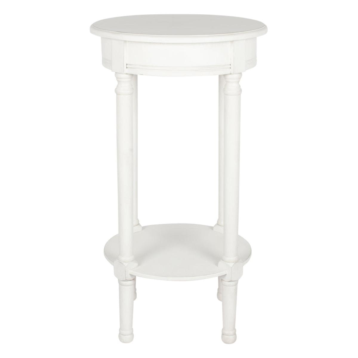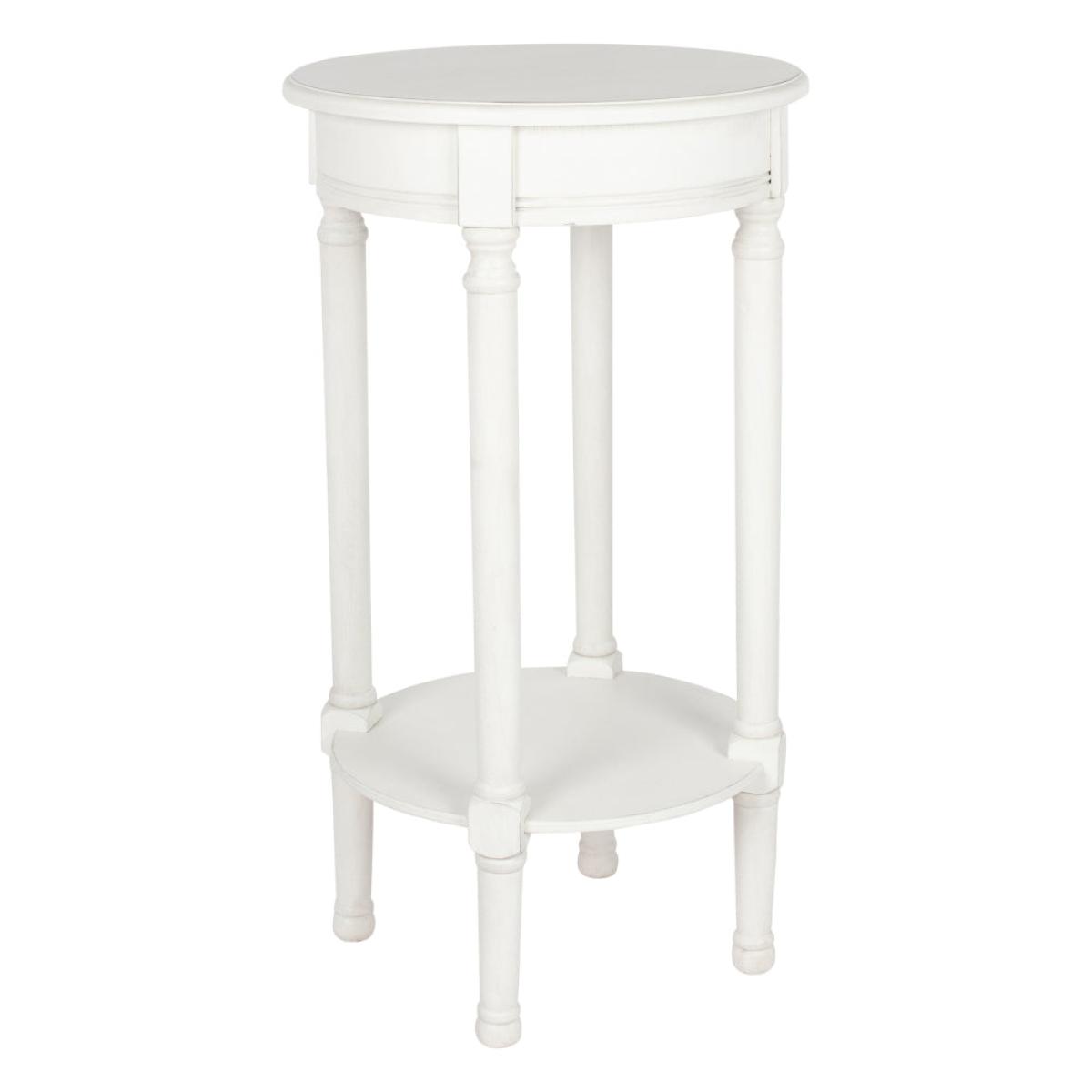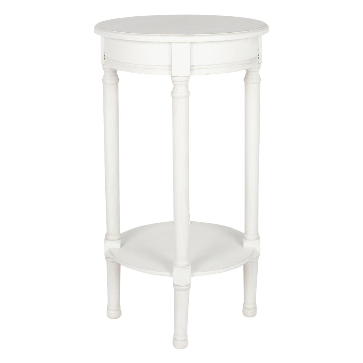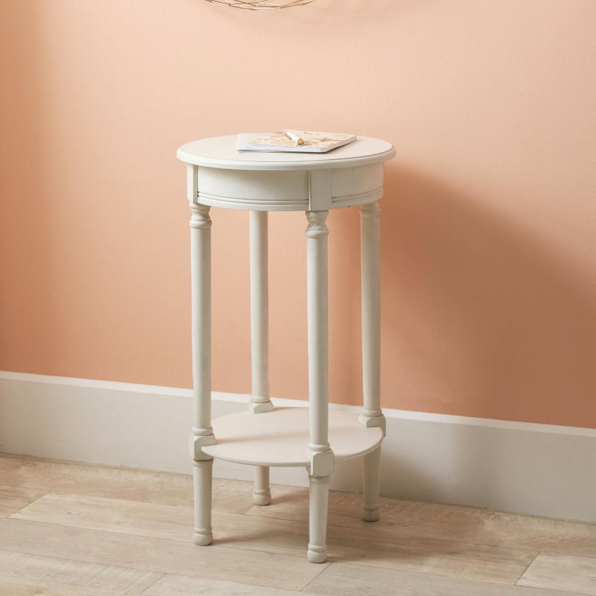 Add a touch of timeless elegance to your home with the. Featuring a classic round tabletop and graceful turned legs, this charming piece blends traditional style with everyday practicality. Crafted from a combination of durable pine wood and high-quality MDF, the table is finished in a soft white hue that brightens any room. Its compact size makes it a perfect choice for use beside a sofa, armchair, or bed, while the lower shelf offers extra space for storage or display. Whether holding a lamp, a book, or a decorative accent, the Heritage Elizabeth Round End Table is both stylish and functional.