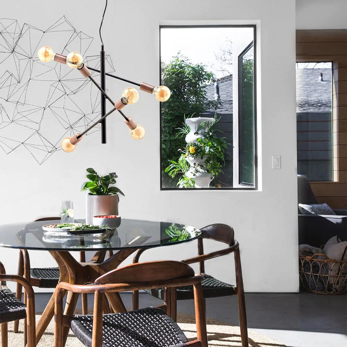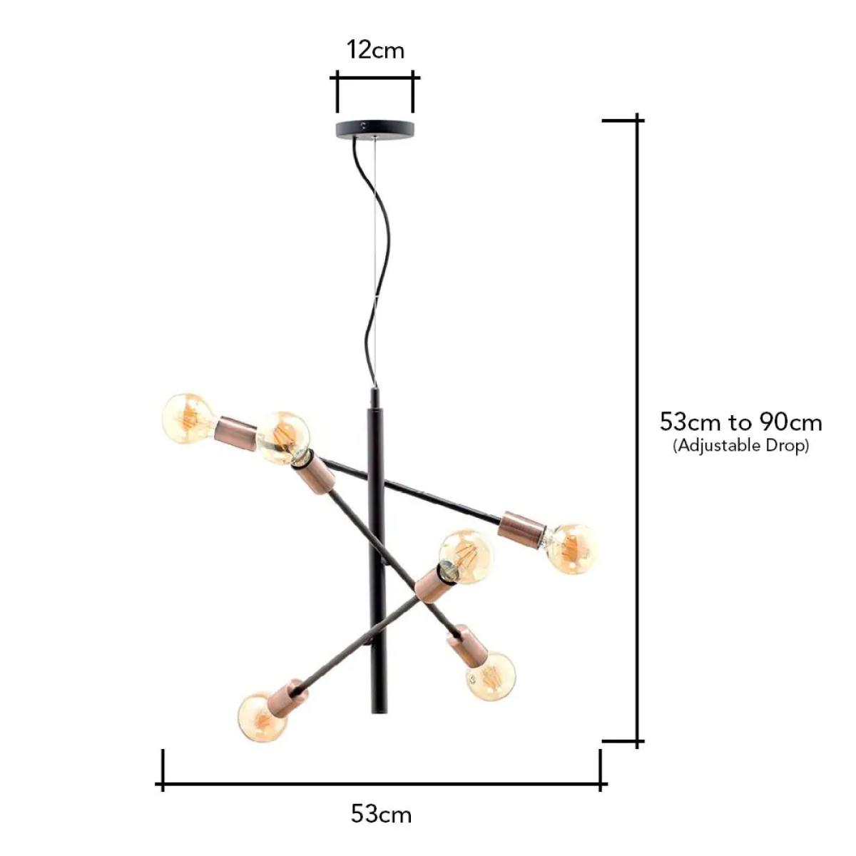 Add a stunning industrial edge to your interior décor with our Heritage Inspired Calvet Ceiling Pendant. This abstract pendant light comes in a stunning black and copper finish, offering a beautiful rustic aesthetic that is perfect above any dining room table. The ceiling light is fully height adjustable to fit low and high ceilings and looks ideal when paired with our separately sold vintage filament light bulbs.