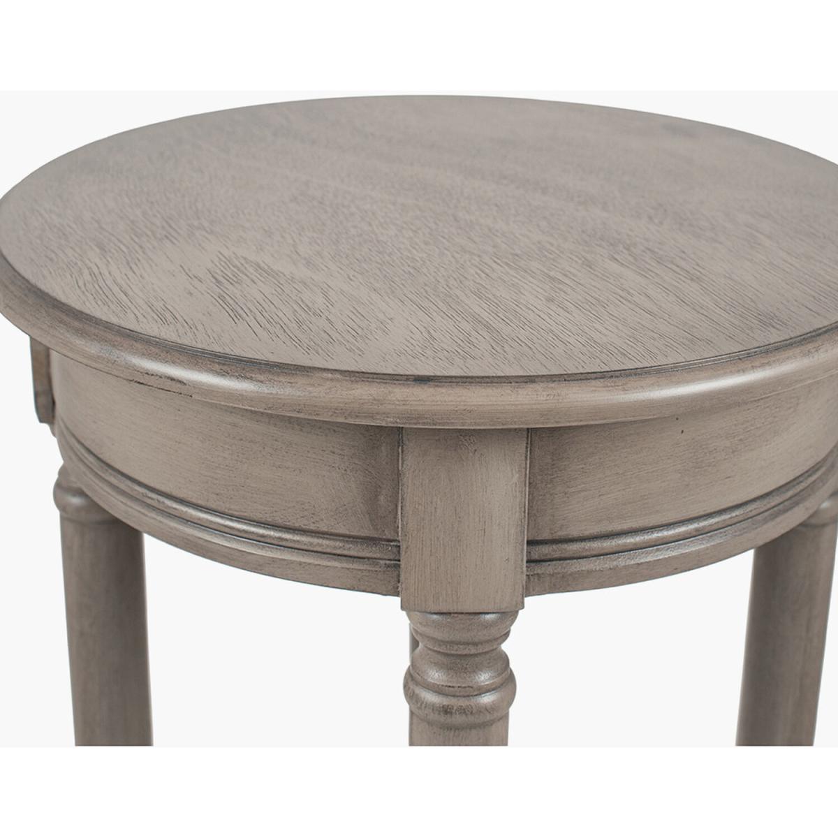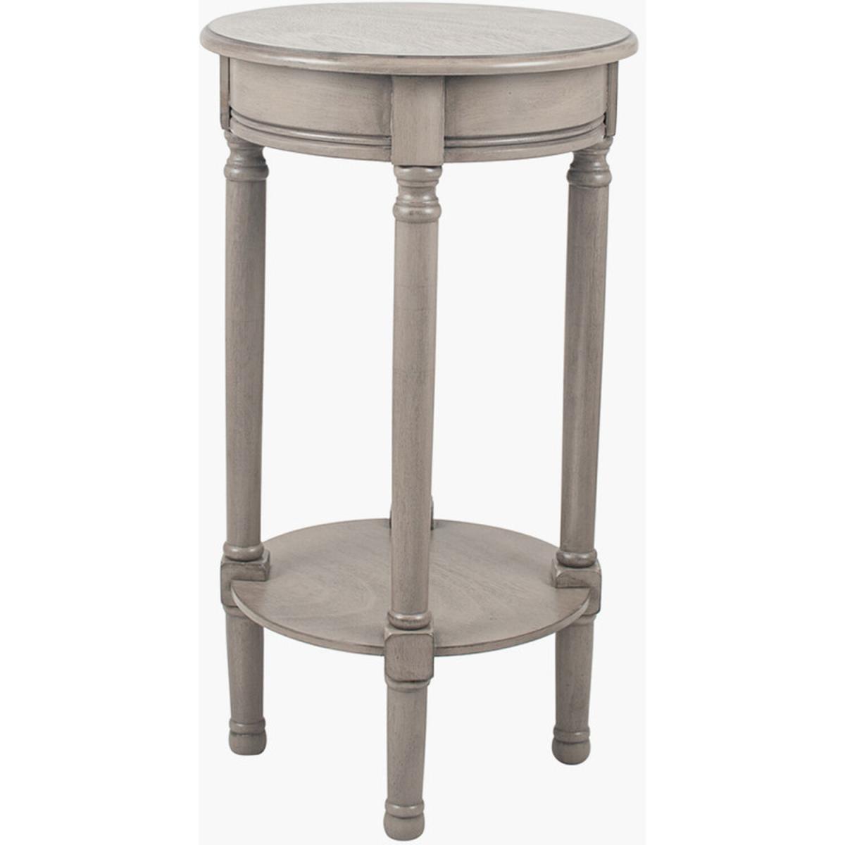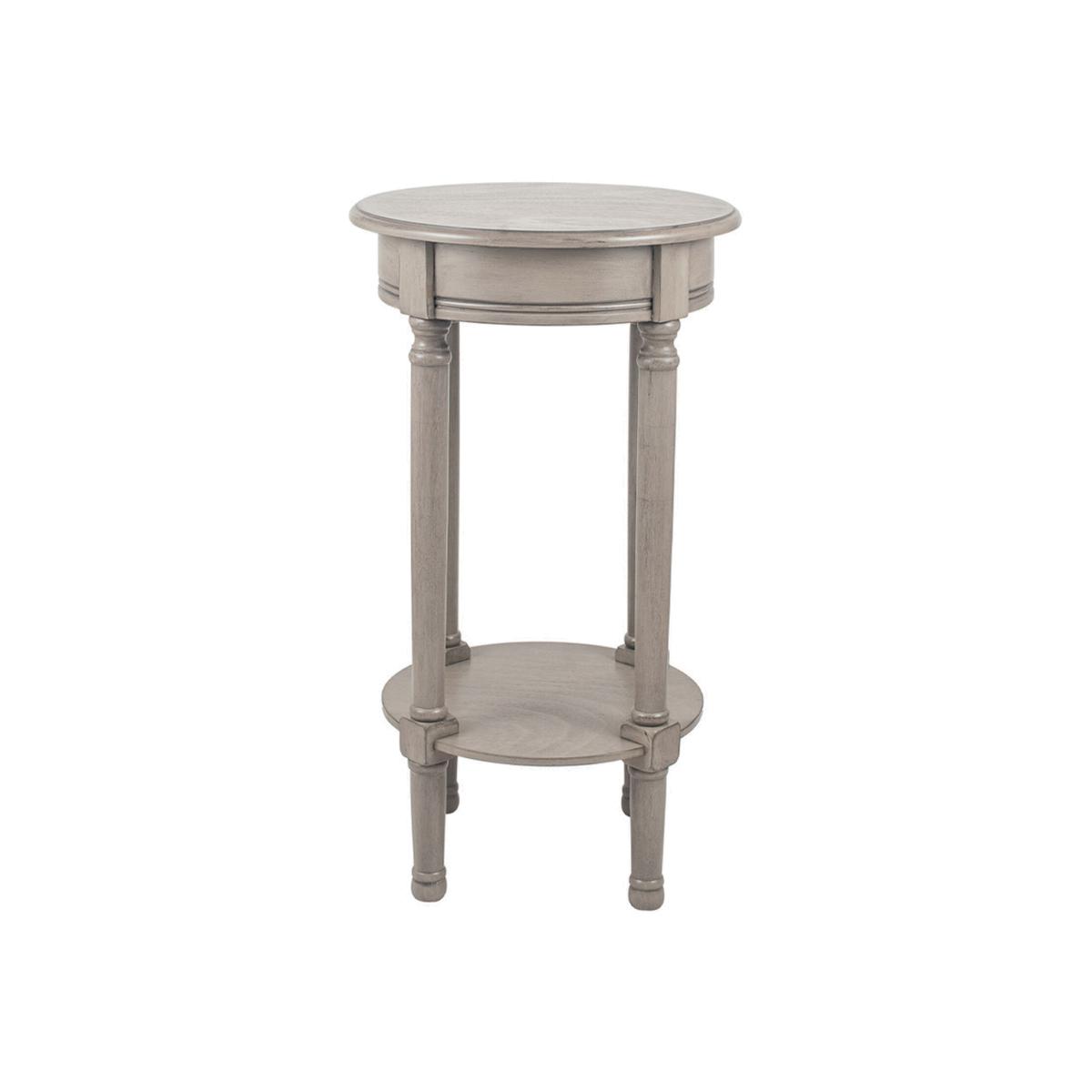 In beautiful taupe finish pine wood, this round accent table is a design that will stand the test of time. Its shelf offers further storage and tabletop space in a streamlined manner. It is a design that will stand the test of time. This piece sits beautifully within our Ashwell Collection alongside other furniture pieces within this range.