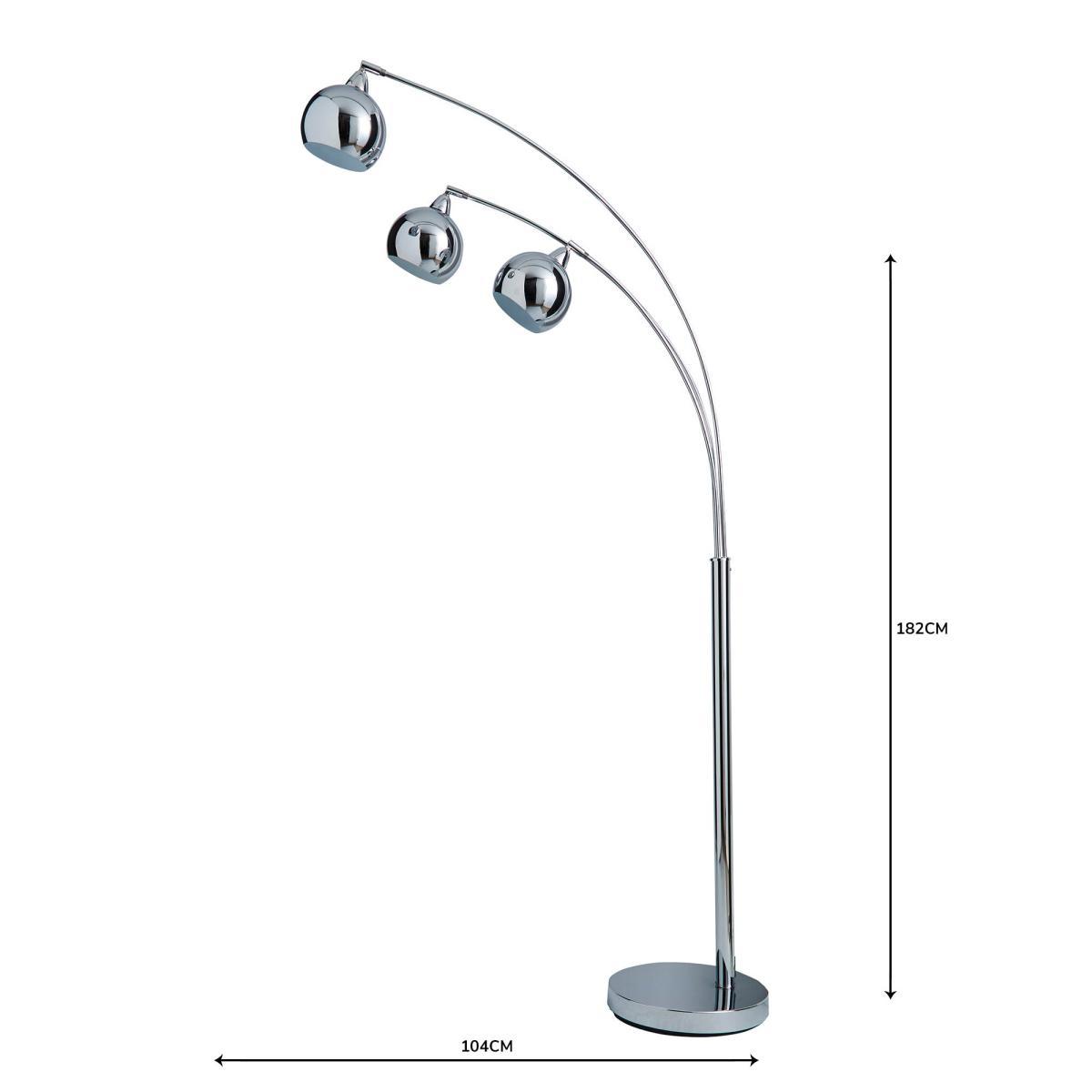 The Arc Herm Chrome Multi Head Floor Lamp features three dome shade heads with an inline switch, cable length of 100cm and crafted with a stunning smooth chrome finish, making it a perfect floor lamp to enhance your home décor. Click. Here. To purchase the recommended bulb. This floor lamp comes with a 2 year guarantee. Click. Here. To view our terms and conditions.