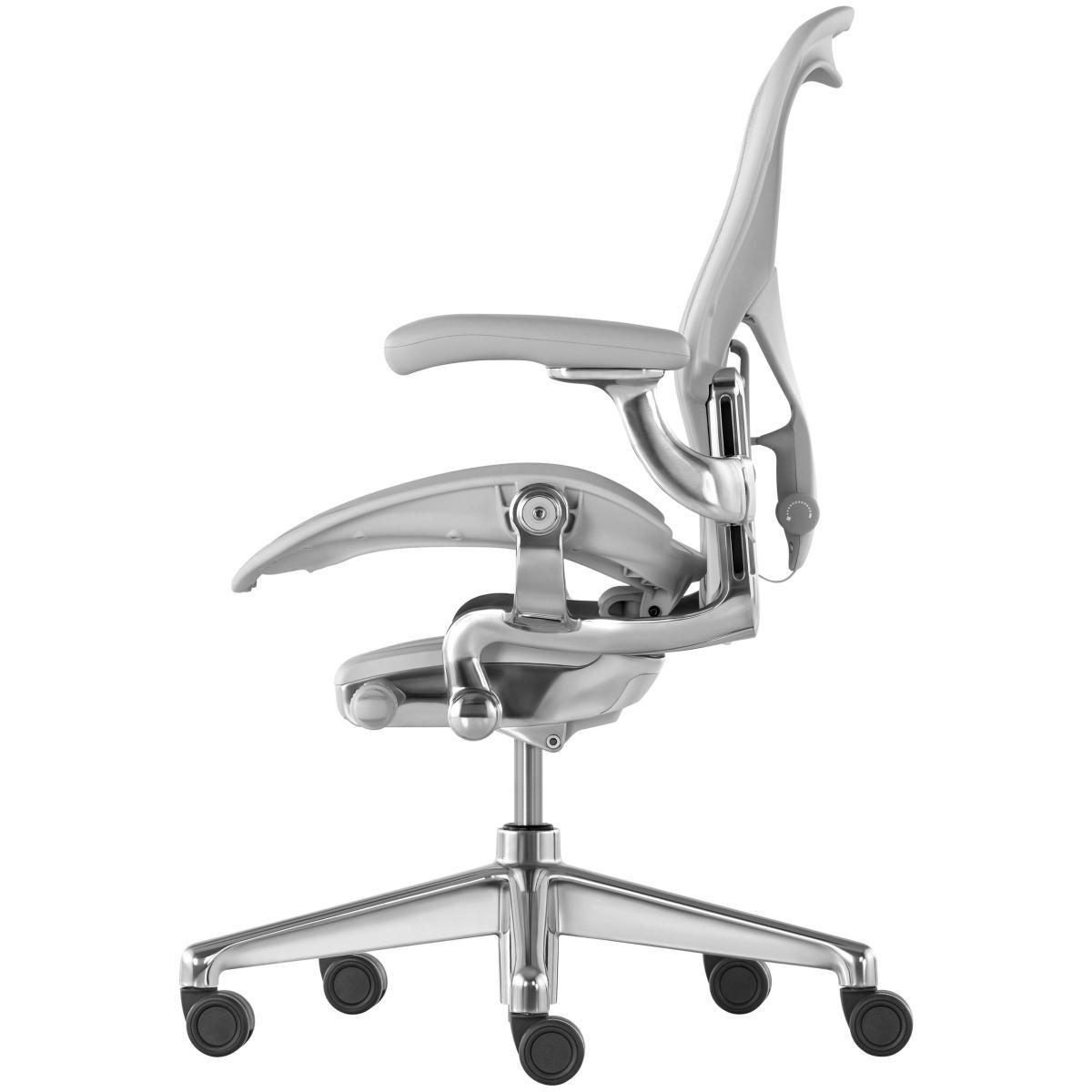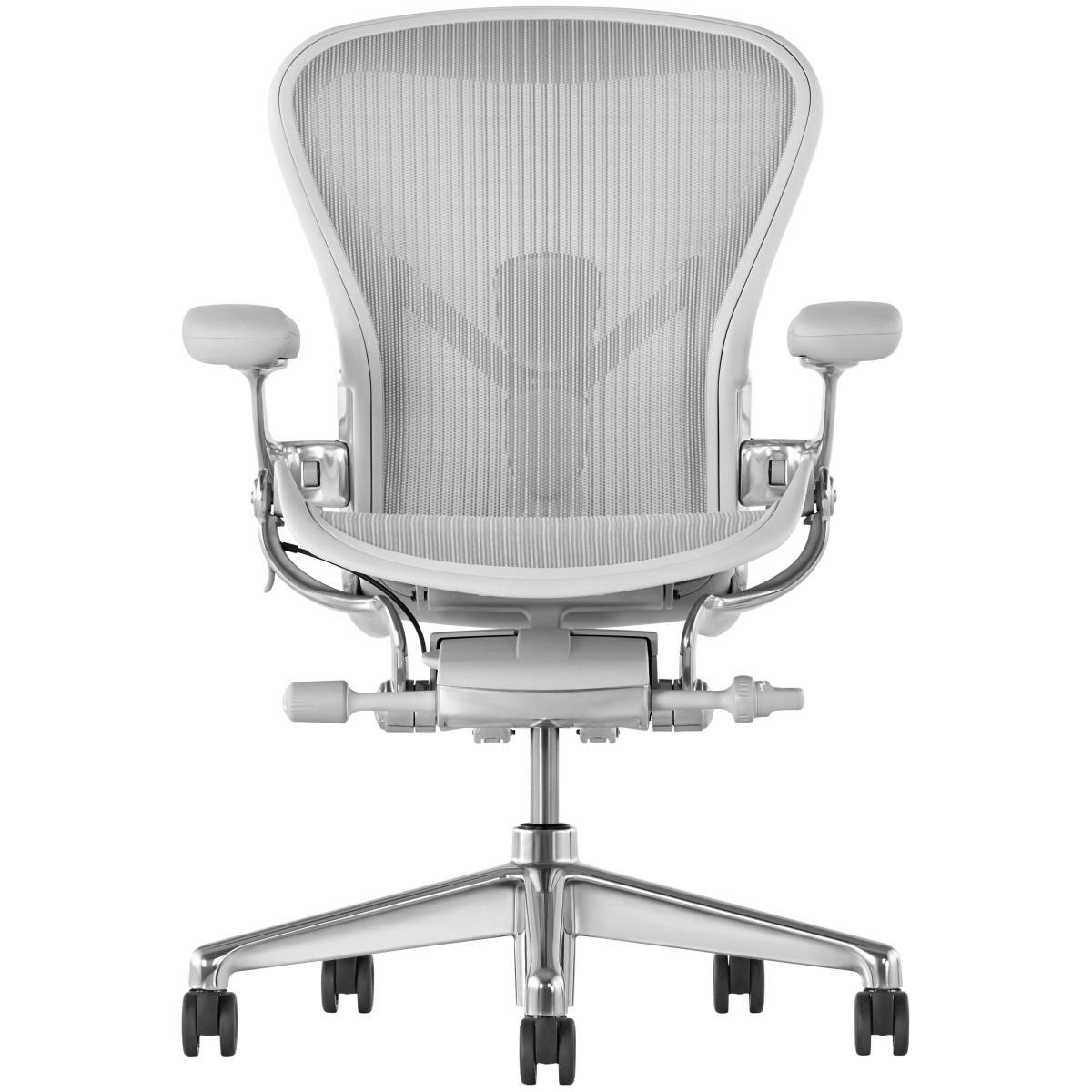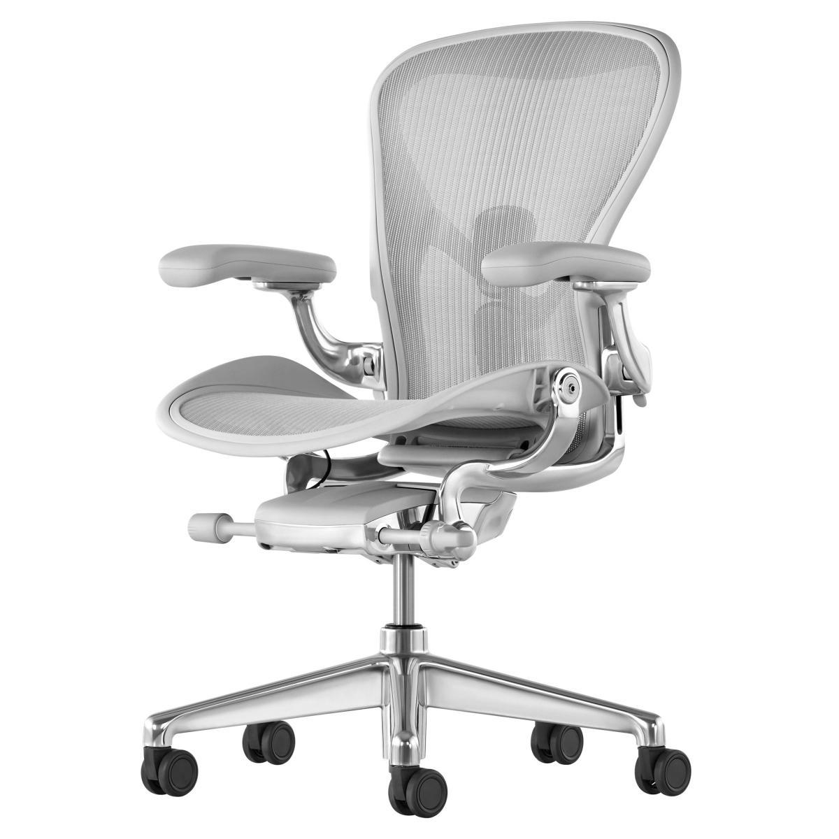 Made in the UK Part of Design Icons Herman Miller's Aeron office chair is designed to meet the needs of today's work, workers and work environments. Co-designed with industrial designer Don Chadwick, and using the latest research around the science of sitting, this innovative and ergonomic chair fully accommodates the widest possible range of activities and postures people adopt while working. The chair back and seat are linked, and tilt simultaneously at different ratios as you lean back to provide responsive support for your lower back. It's also easily adjustable, from intense forward-facing focus to a more relaxed, contemplative recline. Health-positive and cross-performing design Aeron’s innovative 8. Z Pellicle suspension mesh material on the backrest allows air, body heat and water vapour to pass through the seat and back for enhanced and comfortable temperature regulation. The backrest is also designed with eight zones of varying tensions to deliver increased comfort and ergonomic support. Posture Fit SL works with the frame and the 8. Z Pellicle to support the sacrum and lumbar region of the spine to keep you strong while you sit. Adjustable to suit your needs A forward shift in the frame encourages you to sit with a more natural seated posture. The height adjustable seat means you can keep your feet flat on the floor to support your lower back and the chair back can tilt to a position that's comfortable for you. The height and width adjustable arms also reduce muscular effort in your neck and shoulders to minimise pain. Protect your floor While this chair is suitable for the flooring specified, we suggest using floor pads or mats where possible, for added protection to your flooring and furniture. Worth knowing Dye transfer from materials or fabrics to seating surfaces may occur and is more noticeable on lighter coloured models. Dye transfer is not covered under the Herman Miller warranty. Want to see it first? You may want to see and get a feel for the furniture in one of our shops before ordering. We'll be able to tell you where the range you'd like to view is on display.