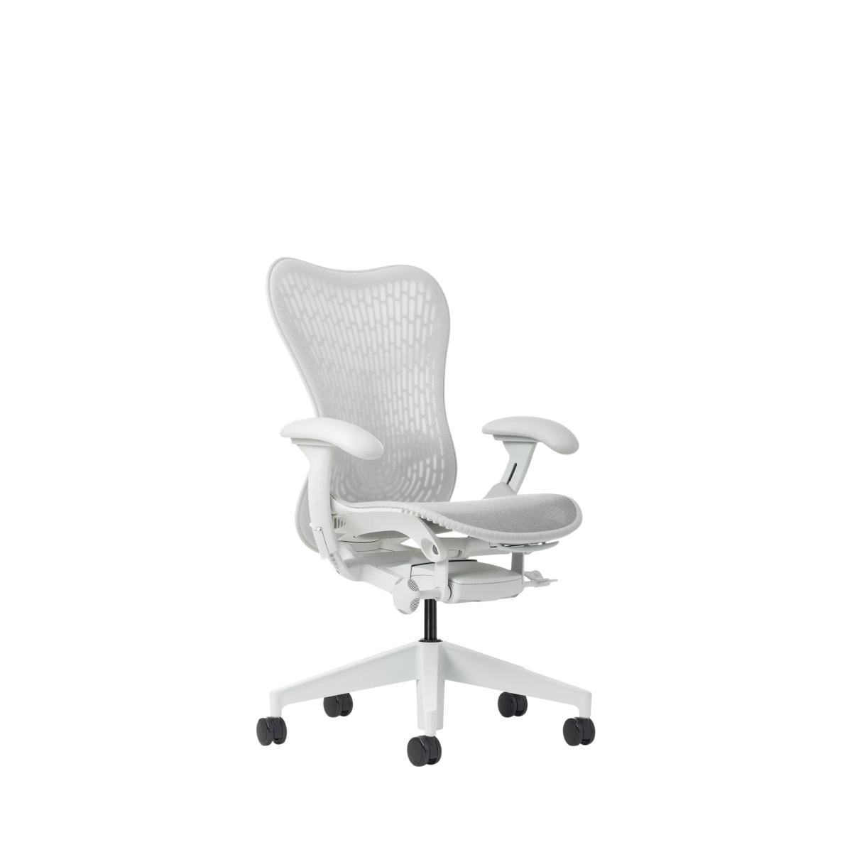 Designed by Berlin-based design team Studio 7.5, Mirra 2 by Herman Miller is a high-performing office chair that moves with you to offer constant support. When you sit, the seat and back adapt to you instantly, ensuring you remain comfortable and energised during the working day. With dynamic surfaces that respond to your slightest movements and simple, intuitive adjustments to fine-tune the fit, this chair balances immediate comfort and personalised ergonomics into one contemporary design. Harmonic 2 Tilt Flexible, yet supportive, this office chair features a Loop Spine design, providing torsional flex that allows you to stretch and reach laterally, while the Harmonic 2 tilt provides a smooth, balanced feel as you recline. AireWeave™ 2 seat suspension This chair conforms to your shape, distributes your weight evenly, and keeps heat from building as you sit. Easy to adjust With adjustable armrests, a height-adjustable swivel seat and a tilting backrest, you can be assured that this office chair will encourage a healthy posture and dynamic seating position. Protect your floor For added protection to your floor and furniture, we recommend using floor pads or mats where possible. Want to see it first? You may want to see and get a feel for the furniture in one of our shops before ordering. We'll be able to tell you where the range you'd like to view is on display.