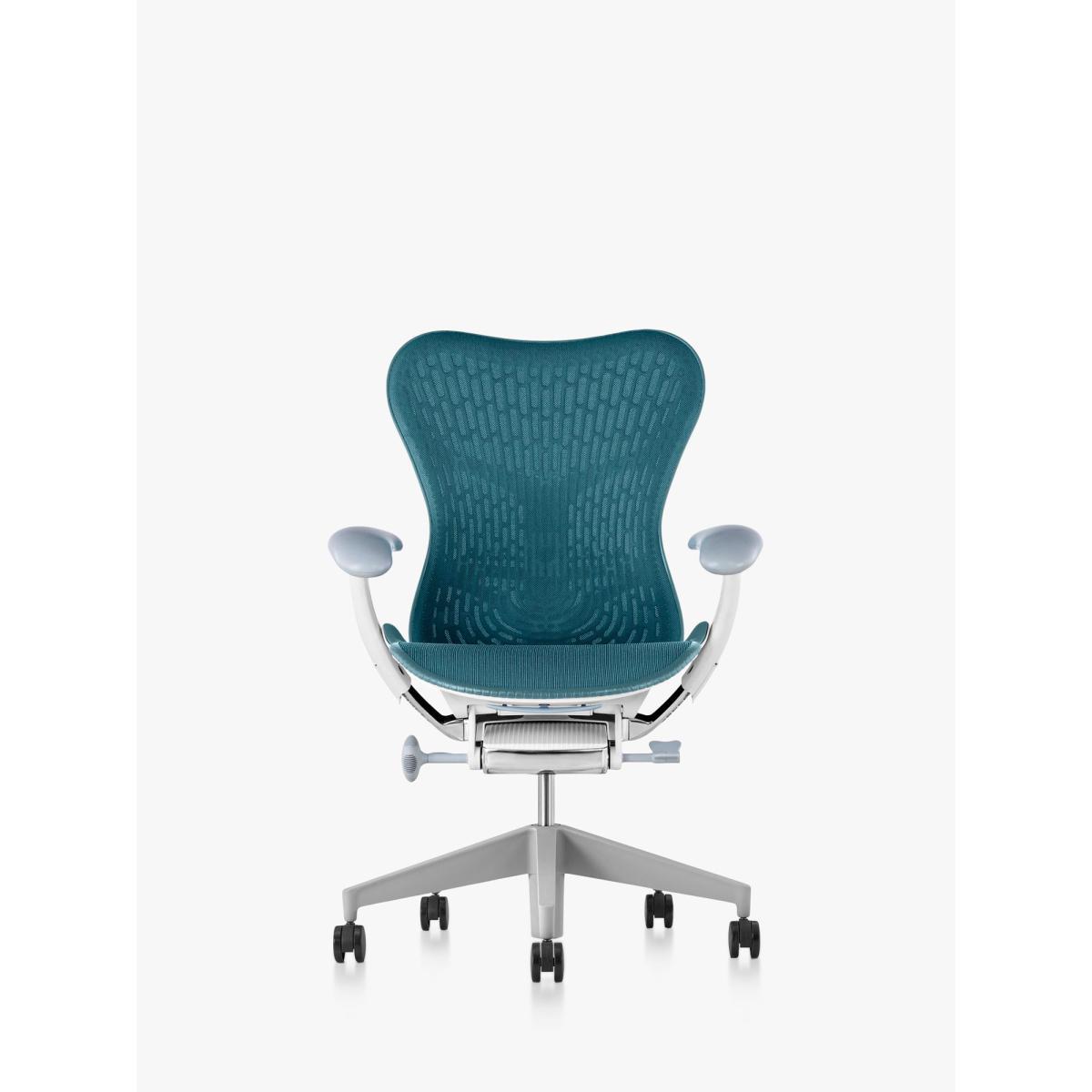 Designed by Berlin-based design team Studio 7.5, Mirra 2 by Herman Miller is a high-performing office chair that moves with you to offer constant support. When you sit, the seat and back adapt to you instantly, ensuring you remain comfortable and energised during the working day. With dynamic surfaces that respond to your slightest movements and simple, intuitive adjustments to fine-tune the fit, this chair balances immediate comfort and personalised ergonomics into one contemporary design. Harmonic 2 Tilt Flexible, yet supportive, this office chair features a Loop Spine design, providing torsional flex that allows you to stretch and reach laterally, while the Harmonic 2 tilt provides a smooth, balanced feel as you recline. AireWeave™ 2 seat suspension This chair conforms to your shape, distributes your weight evenly, and keeps heat from building as you sit. Easy to adjust With adjustable armrests, a height-adjustable swivel seat and a tilting backrest, you can be assured that this office chair will encourage a healthy posture and dynamic seating position. Protect your floor For added protection to your floor and furniture, we recommend using floor pads or mats where possible. Want to see it first? You may want to see and get a feel for the furniture in one of our shops before ordering. We'll be able to tell you where the range you'd like to view is on display.