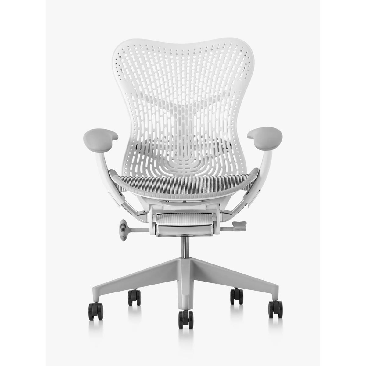 Made in the UK Part of Design Icons Designed by Berlin-based design team Studio 7.5, Mirra 2 by Herman Miller is a high-performing office chair that moves with you to offer constant support. When you sit, the seat and back adapt to you instantly, ensuring you remain comfortable and energised during the working day. With dynamic surfaces that respond to your slightest movements and simple, intuitive adjustments to fine-tune the fit, this chair balances immediate comfort and personalised ergonomics into one contemporary design. Harmonic 2 Tilt Flexible, yet supportive, this office chair features a Loop Spine design, providing torsional flex that allows you to stretch and reach laterally, while the Harmonic 2 tilt provides a smooth, balanced feel as you recline. AireWeave™ 2 seat suspension This chair conforms to your shape, distributes your weight evenly, and keeps heat from building as you sit. Easy to adjust With adjustable armrests, a height-adjustable swivel seat and a tilting backrest, you can be assured that this office chair will encourage a healthy posture and dynamic seating position. Protect your floor For added protection to your floor and furniture, we recommend using floor pads or mats where possible. Want to see it first? You may want to see and get a feel for the furniture in one of our shops before ordering. We'll be able to tell you where the range you'd like to view is on display.