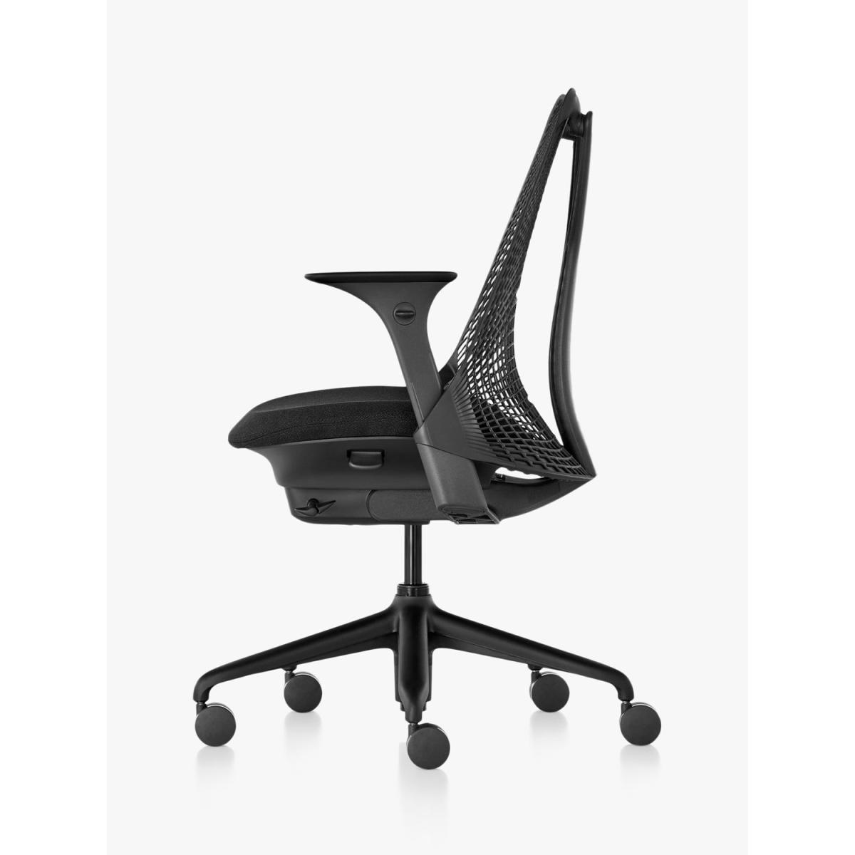 Awarded a host of design awards, the SAYL office chair combines complete comfort and thoughtful design. Featuring a design inspired by the principles of suspension bridges, the SAYL has a frameless back that encourages a full range of movement while keeping you cool. The innovative SAYL office chair from Herman Miller is designed to ensure comfort that is tailored to your individual needs. The frameless back has no hard edges and flexes freely to give you full ergonomic support and freedom of movement, with an elastolex foam and fabric seat providing cushioning that conforms to the contours of your body. Thanks to 3D intelligent suspension technology, there is greater tension in certain transition areas that need more support, such as the lumbar areas. Hinge points allow these areas to flex and support the healthy, forward rotation of the pelvis, while less tension in other parts of the back encourages a full range of seated movement. SAYL is made using fewer materials in creative ways, to keep a smaller carbon footprint. Protect your floor While this chair is suitable for the flooring specified, we suggest using floor pads or mats where possible, for added protection to your flooring and furniture. Want to see it first? You may want to see and get a feel for the furniture in one of our shops before ordering. We'll be able to tell you where the range you'd like to view is on display.