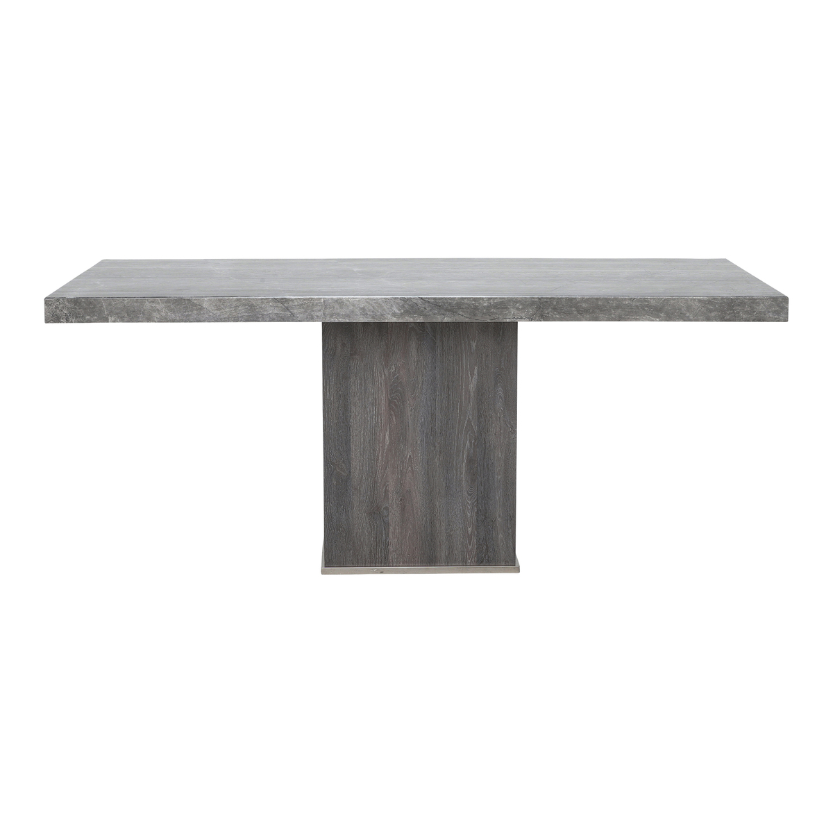I love this dining table for its minimalist yet striking use of concrete-like texture, making it a versatile statement piece. It works particularly well in contemporary, industrial, or urban interiors, where its raw aesthetic can be paired with sleek metal or wood accents. Practical styling tips include pairing it with simple, modern chairs or upholstered pieces for contrast, and keeping accessories minimal to let the table be the focal point. It’s also worth considering the size of your space; its substantial presence is ideal for open-plan kitchens or dining rooms where it can ground the overall design without feeling overwhelming.