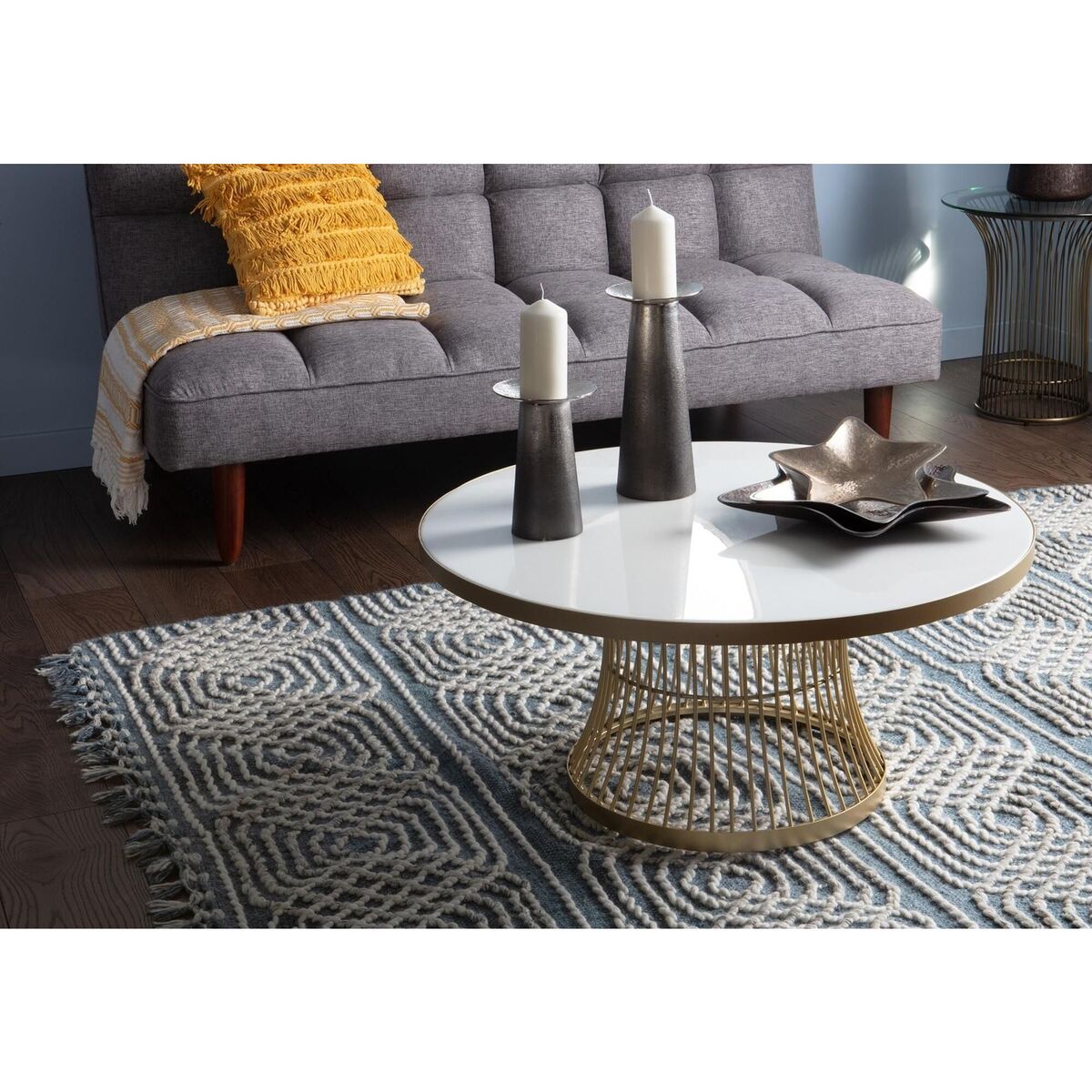 I love this coffee table for its sleek combination of elegance and modern design, making it a versatile piece that elevates the overall aesthetic. Its neutral Heron White top paired with Champagne accents works particularly well in contemporary or minimalist interiors, but can also add a touch of glamour to more eclectic spaces. When styling, consider keeping accessories simple - think a few curated books, a statement vase, or a small sculptures - to let the table’s refined lines shine. It’s also perfect as a centrepiece in both larger open-plan living areas and more intimate lounges, thanks to its balanced scale and striking design.