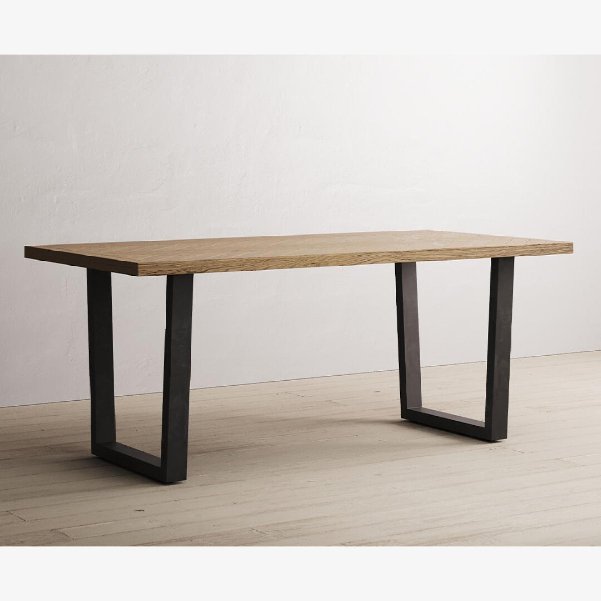 Herringbone 190cm Solid Oak and Metal Dining Table