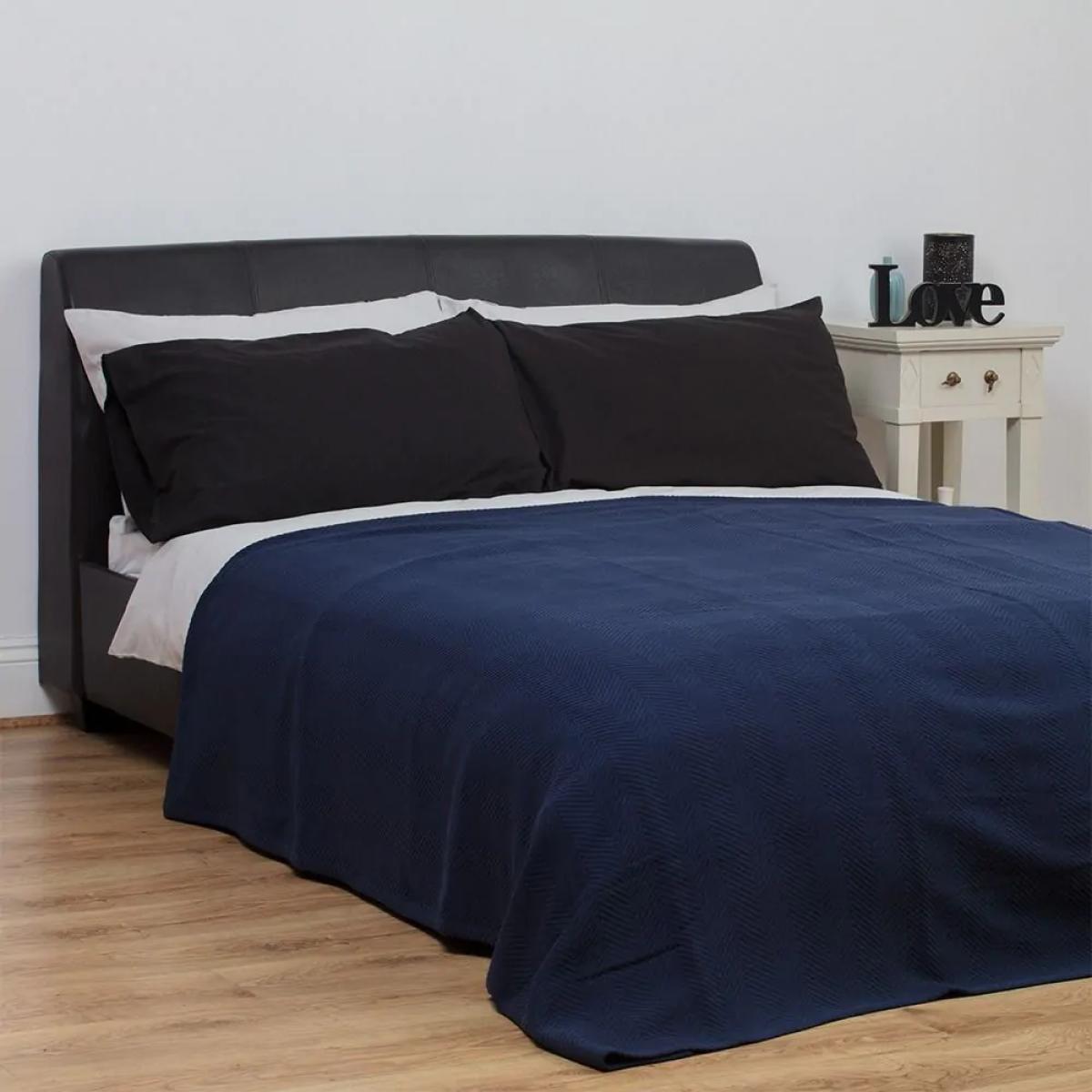 Bedspreads are the perfect finishing touch to your bedroom designs, giving a stylish look to the bed along with extra comfort and warmth that helps you to unwind and relax during those cold winter nights. This herringbone piece has a deep navy colour that adds a richer and more sophisticated look to your bedroom décor, creating a classier environment and tone for your home. The throw is 250x260cm in size so will be a great fit for any size bed!.
