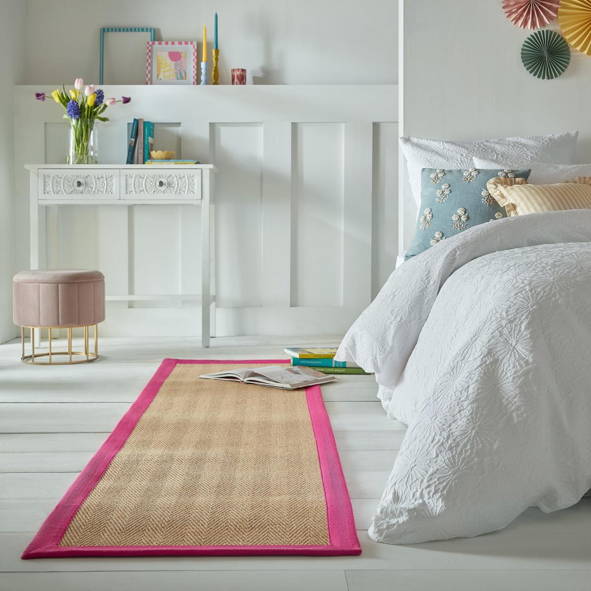 I love the Herringbone Border Runner in pink for adding a fresh, contemporary touch to both understated and playful interiors. Its subtle herringbone pattern combined with the pink border offers a classically stylish look that can lift a hallway, bedroom, or even a living space. It works particularly well in relaxed, casual schemes or to introduce a pop of colour in more neutral settings. For practical styling, consider layering it over a neutral carpet or flooring for visual interest - it’s perfect for guiding the eye and defining different zones. Keep accessories minimal around it to highlight its neat design, or pair with matching pink accents for a cohesive look.