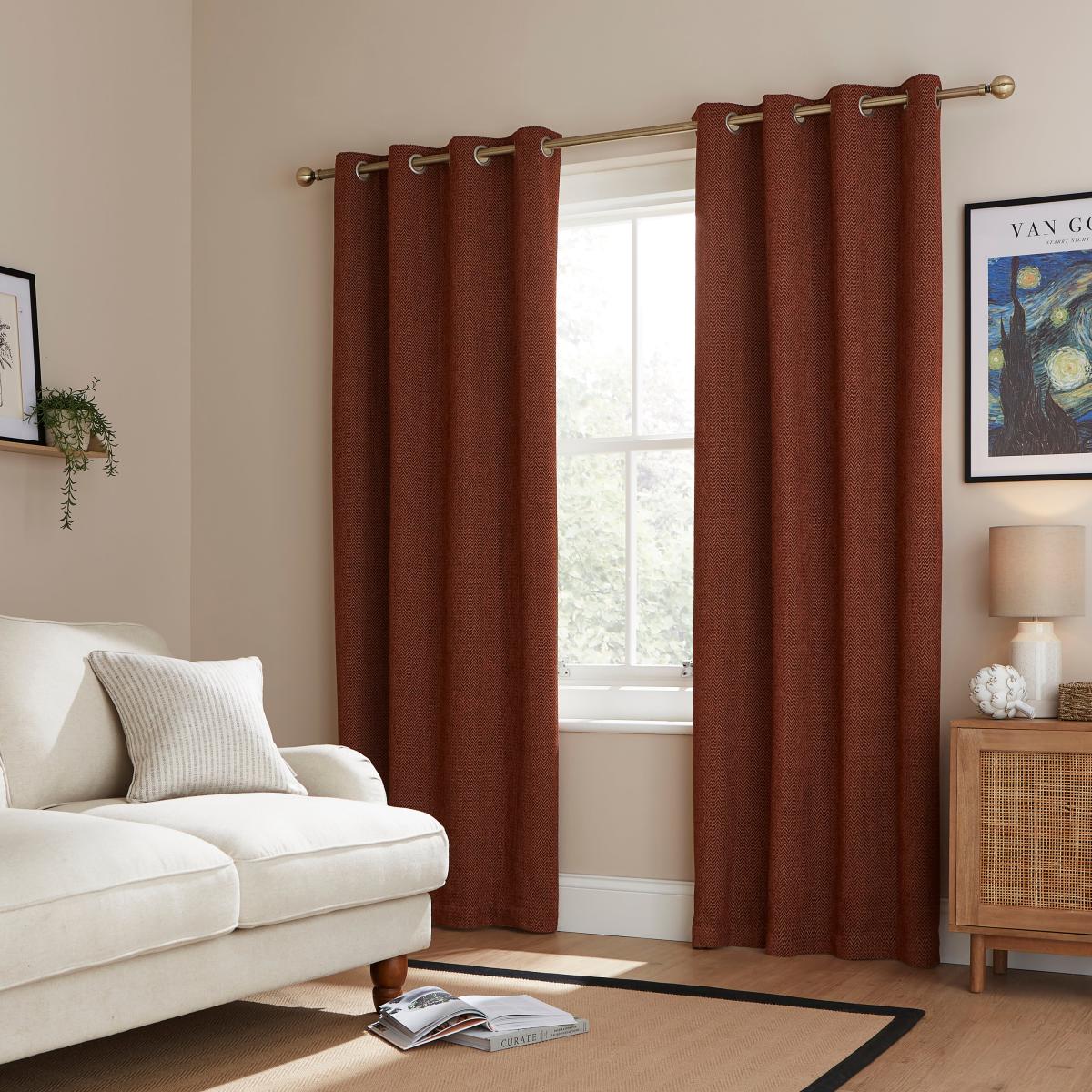 Herringbone Chenille Thermal Eyelet Curtains Butterscotch (Orange)