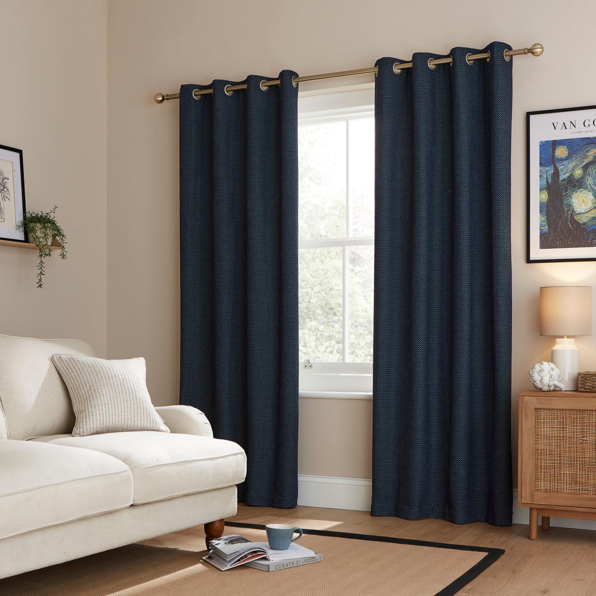 I really like this bit of kit for adding a cosy yet classic touch to a room. The herringbone chenille fabric offers a textured, tactile appearance that works particularly well in traditional and contemporary interiors alike. The denim hue makes it versatile, pairing well with neutral palettes or adding depth to a more colourful scheme. Practical tips include hanging these curtains in a living room or bedroom where insulation is a priority-they're good at blocking out light and helping retain heat. To enhance their look, consider pairing them with matching cushions or soft furnishings in similar tones or textures. Their eyelet design also makes for easy hanging and creates a sleek, modern finish that’s simple to update or switch out when changing styles.
