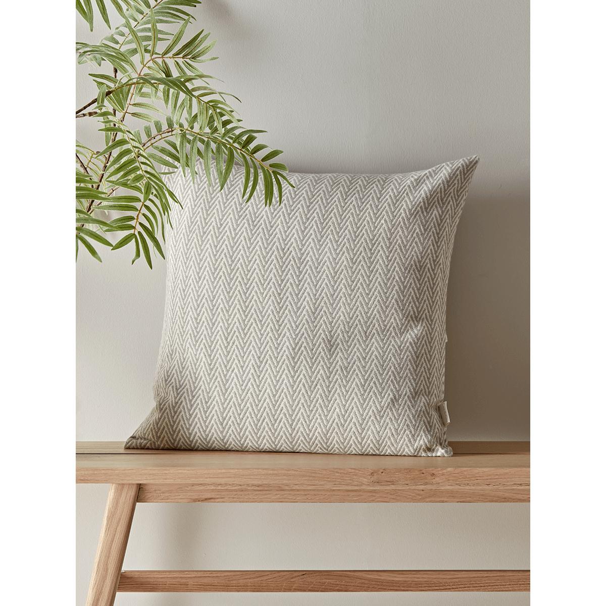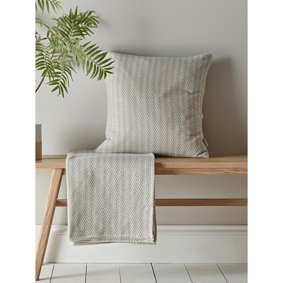 Crafted from pure, organic cotton in soft grey and white, our beautifully soft cushion features an intricate herringbone weave and the cosiest duck feather inner. Pair with our matching Cushion and display on your sofa or bed for added texture.