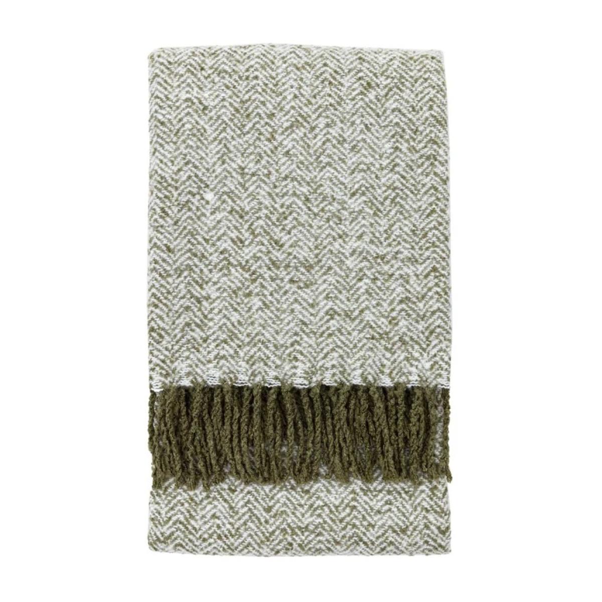Herringbone Faux Mohair Throw - Olive
