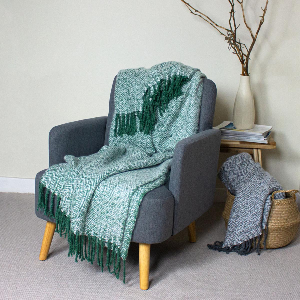 The herringbone fringe throw in green is a versatile accessory that adds texture and warmth to a variety of interiors. Its classic herringbone pattern combined with fringe detail makes it a subtle statement piece, perfect for both contemporary and traditional spaces. I love using this throw over a neutral sofa to introduce a pop of colour and tactile interest, or draped across the foot of a bed for a cosy final touch. For styling tips, consider pairing it with soft cushions in complementary tones or layering it with other textured fabrics for a layered, inviting look. Practical yet stylish, it’s an easy way to update a room while providing cosy comfort.