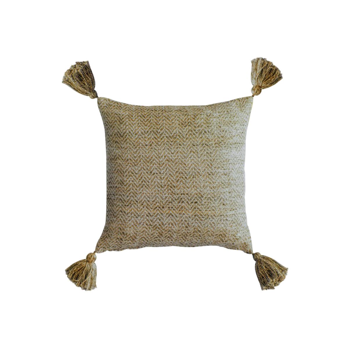 Herringbone PET Tassel Cushion Ochre W450 x H450mm.