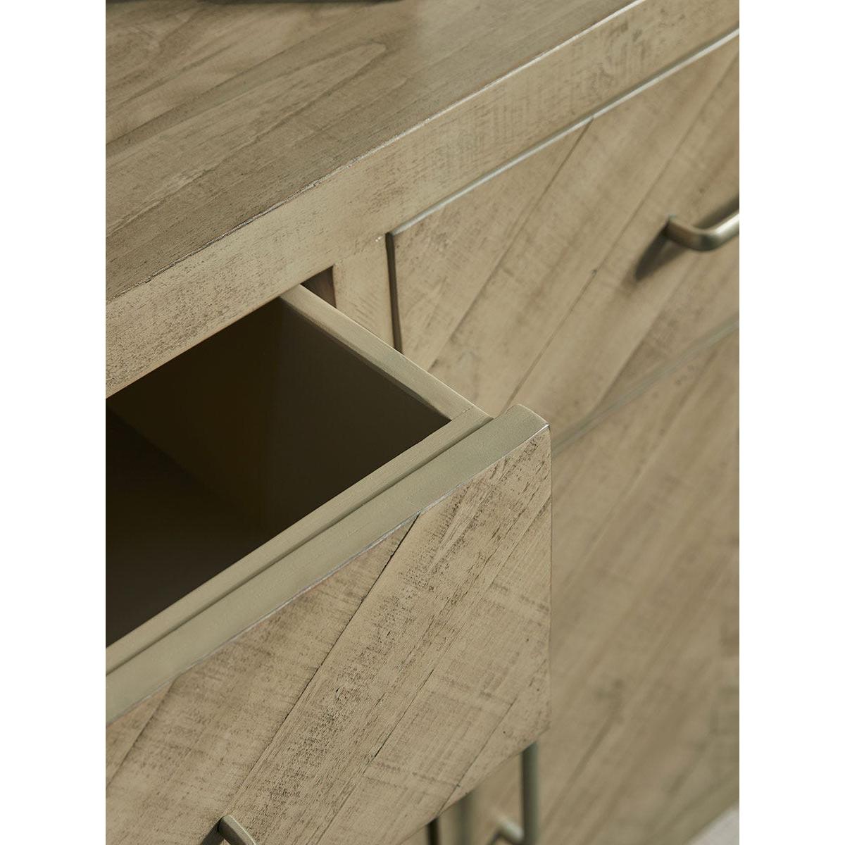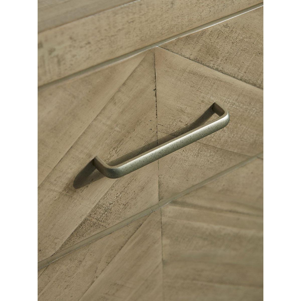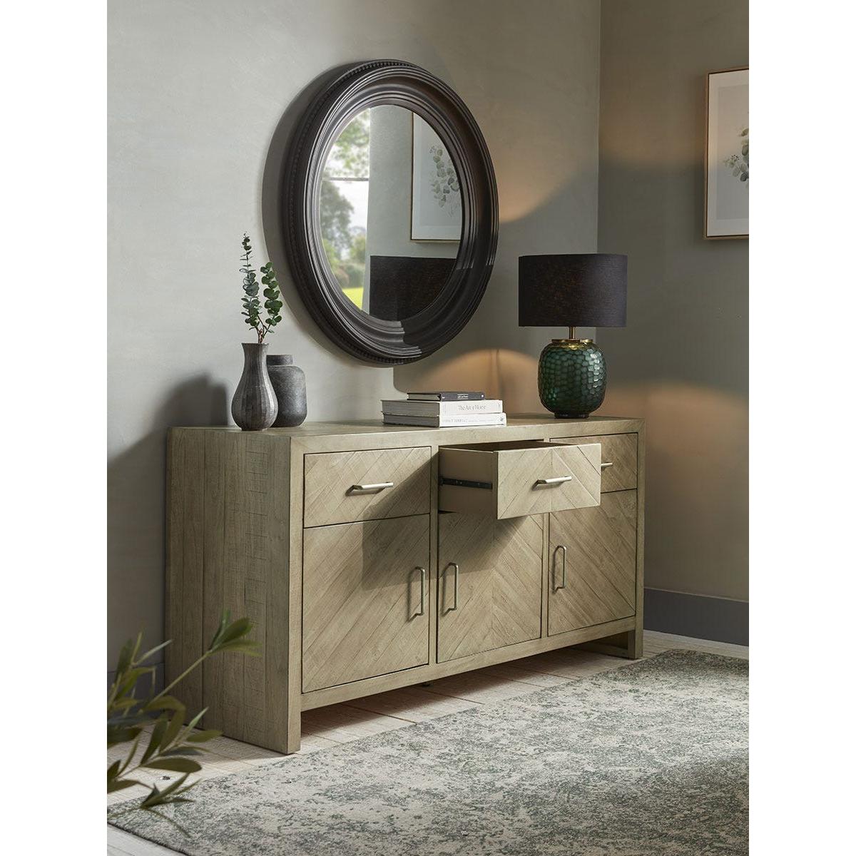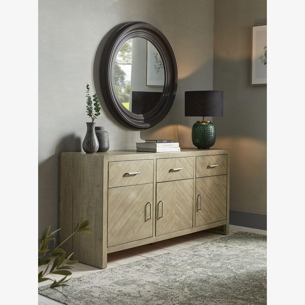 Strong and sturdy in frame, this Herringbone Sideboard has a simple structure that works in any home. Three drawers and cupboards, finished with metal handles that have a sleek and simple design, provide plenty of storage solutions to keep your home looking organised. Herringbone detailing sits on the front of the doors and drawers, adding a subtle yet eye catching detail, working perfectly in our Industrial collection.