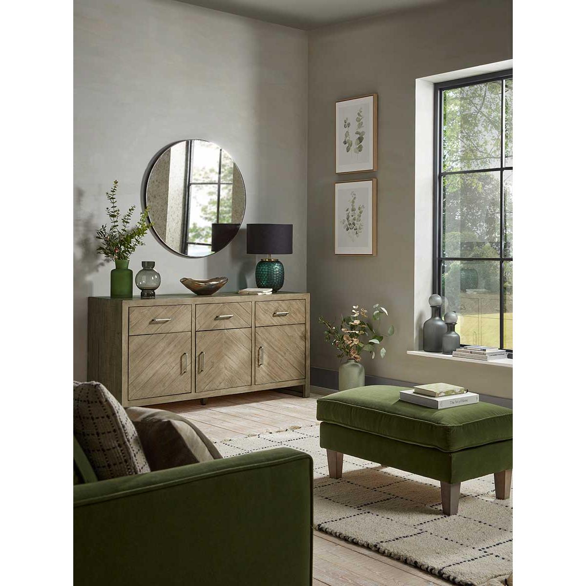 I’m a fan of this herringbone sideboard for its clean lines and subtle patterning - it adds texture without overwhelming a space. The muted oak finish works particularly well in Scandi-inspired or contemporary living rooms and can sit equally comfortably in a hallway or dining area. Styling tips: keep the top concise with a sculptural lamp on one side, a low vase or bowl of pebbles on the other, and a framed print or mirror centred above. Inside, use the drawers for table linens and the cupboards for glassware or board games, so you maintain that clutter-free look.