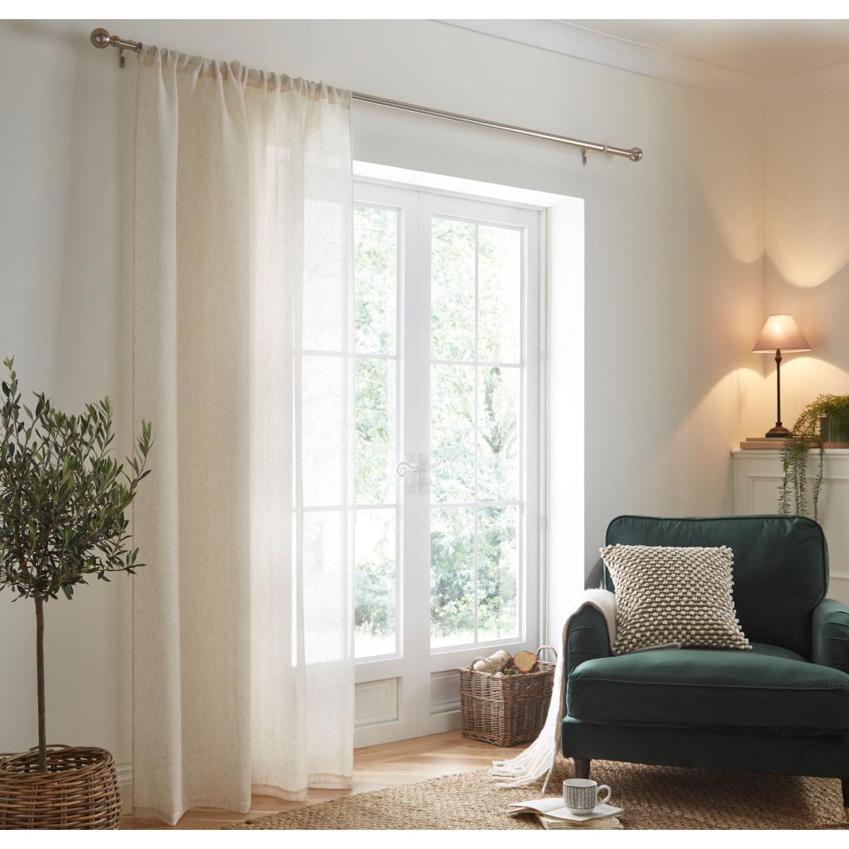 I really like the Herringbone Slot Top Voile Panel in natural because of its versatile, understated look and its ability to add a touch of softness without overwhelming a space. It works particularly well in neutral or minimalist interiors, where its subtle texture enhances the overall aesthetic. Practical styling tips include pairing it with heavier curtains for a layered look and using a slim curtain track for a sleek finish. It’s perfect for letting in plenty of natural light while maintaining privacy, making it a great choice for living rooms, bedrooms, or kitchens where you want a light, airy feel.