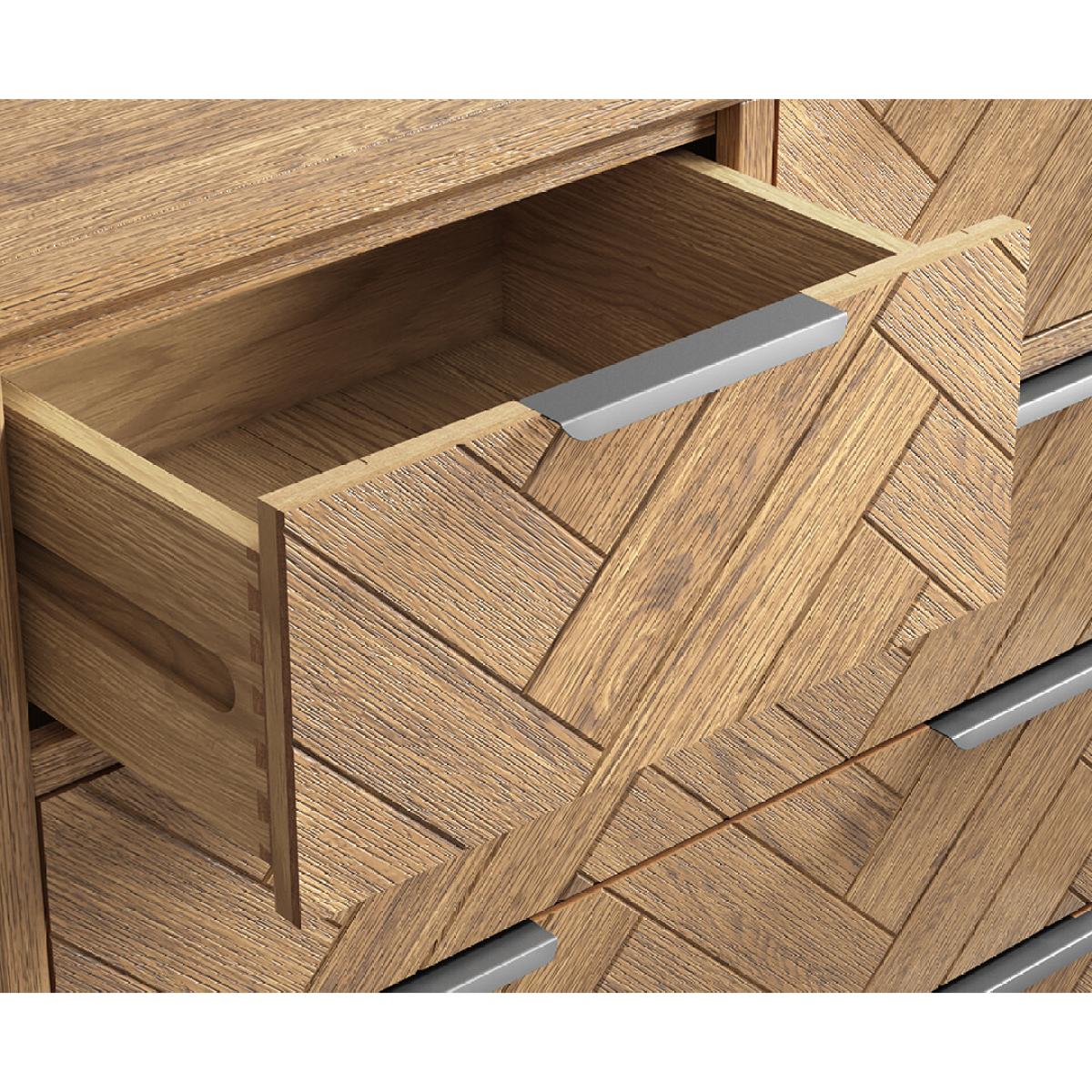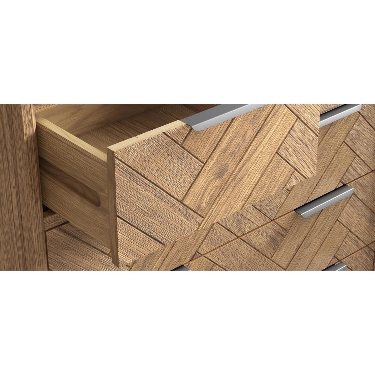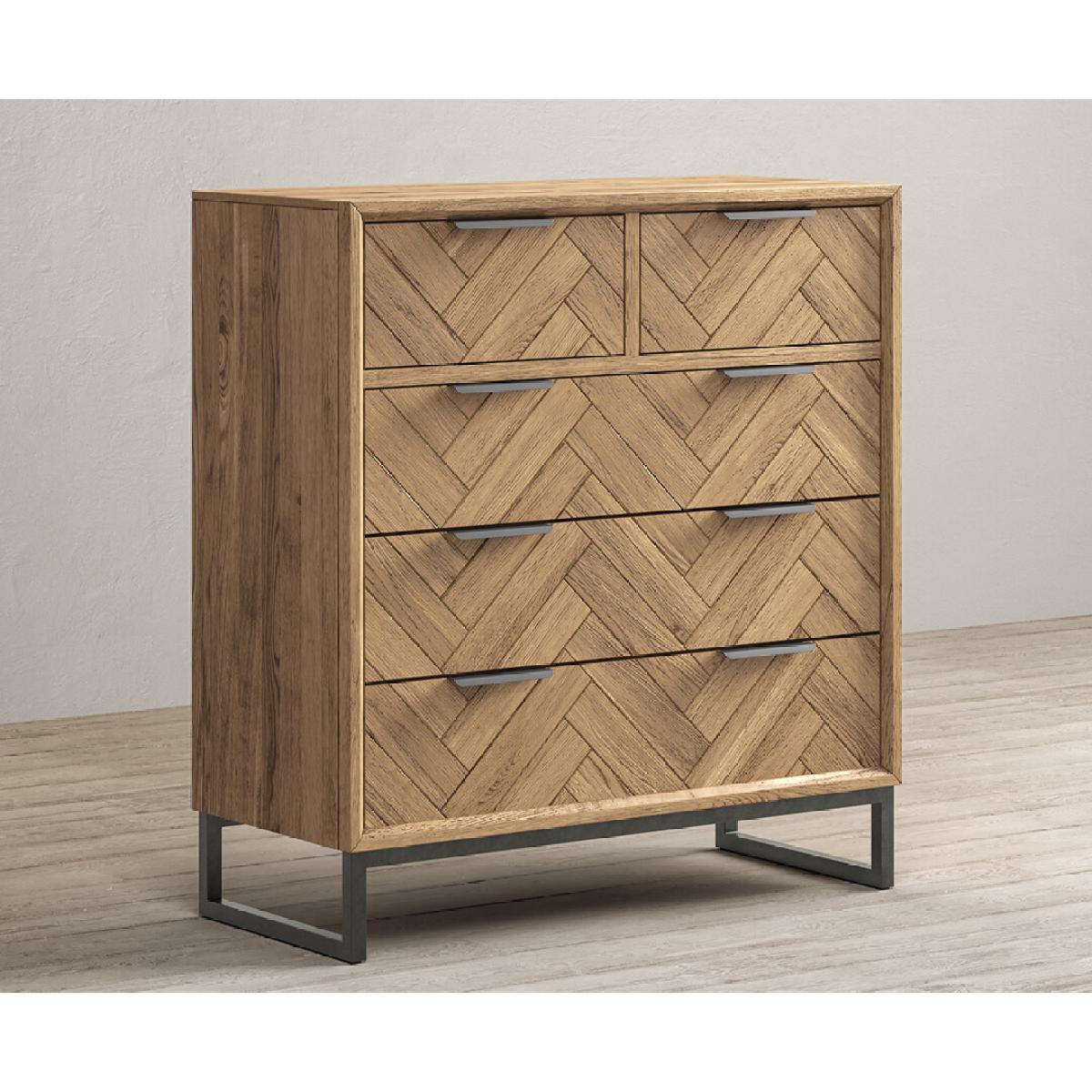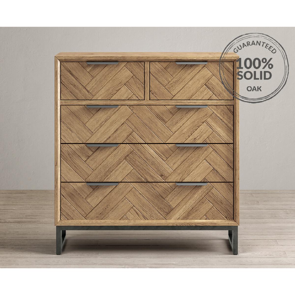 The Herringbone Solid Oak 2 Over 3 Chest of Drawers is a 100% solid oak chest of drawers with a smooth brushed Herringbone finish.