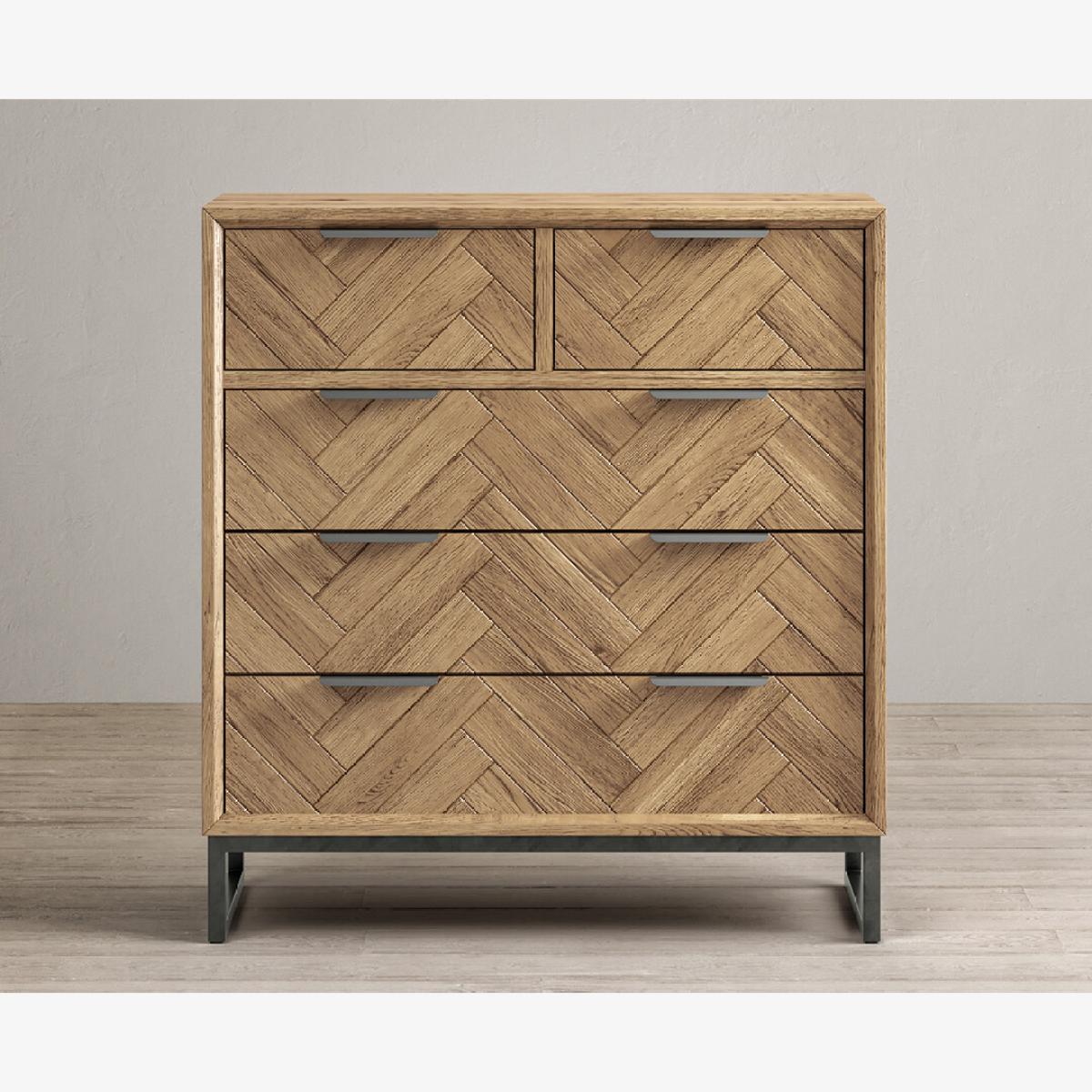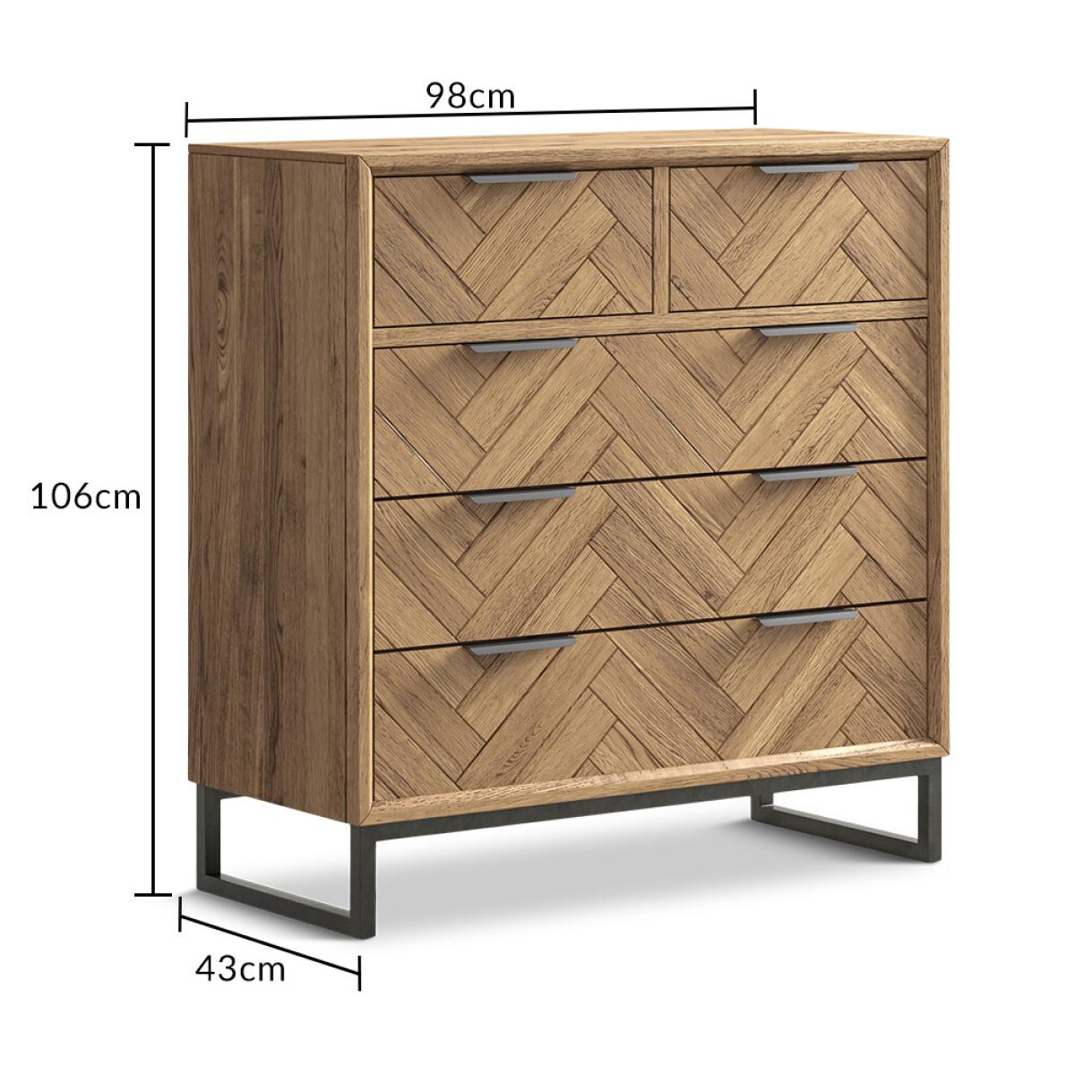 Herringbone Solid Oak 2 Over 3 Chest of Drawers