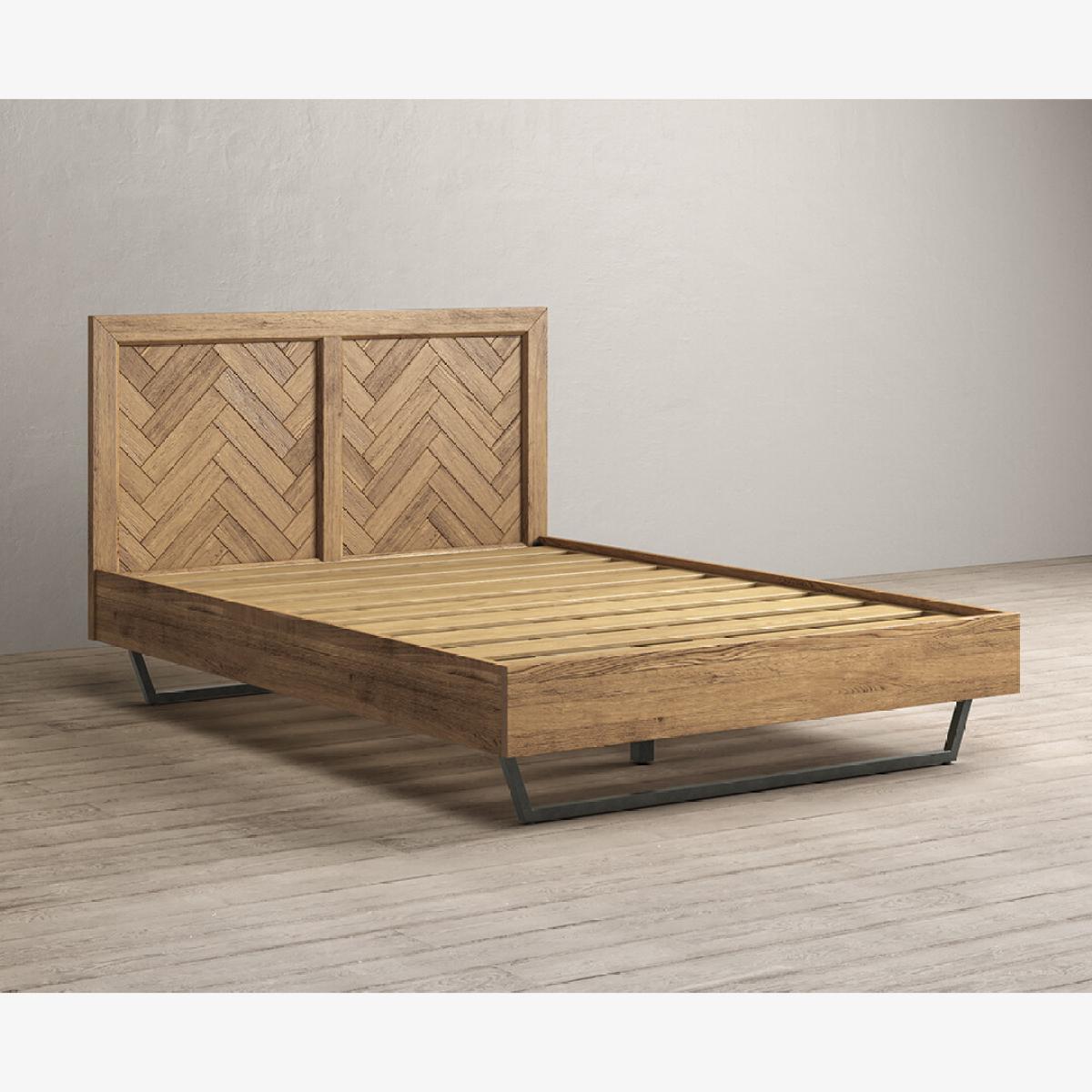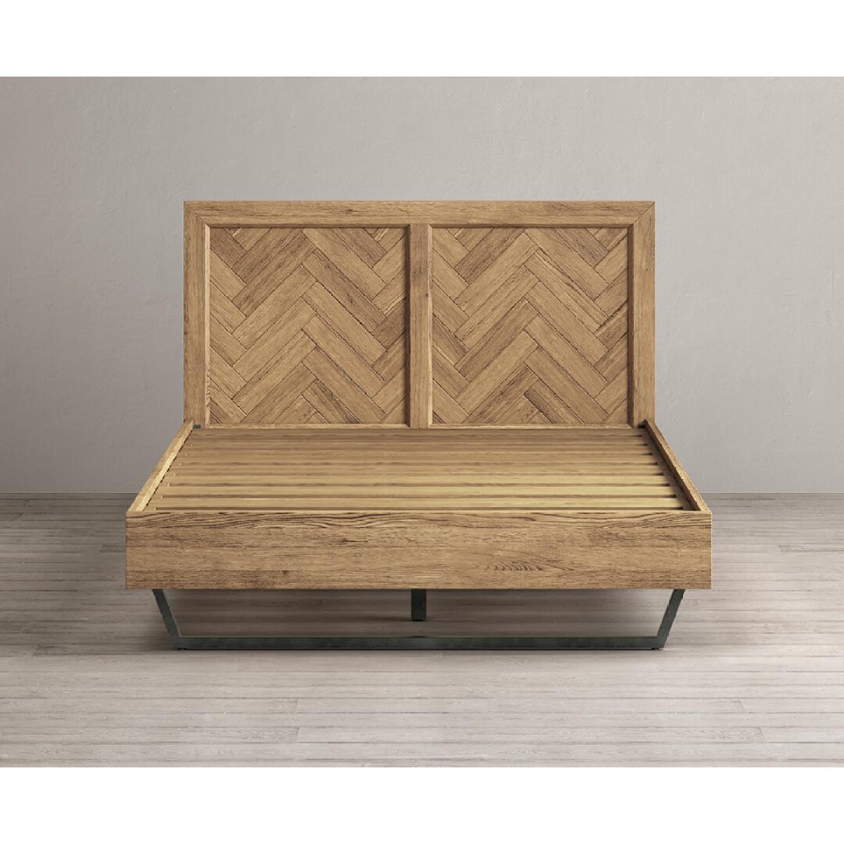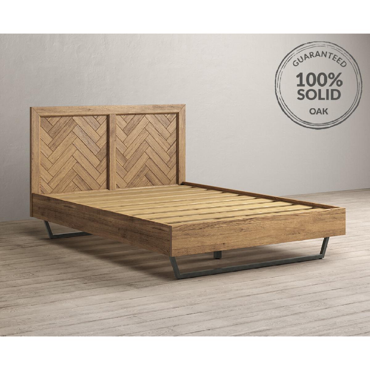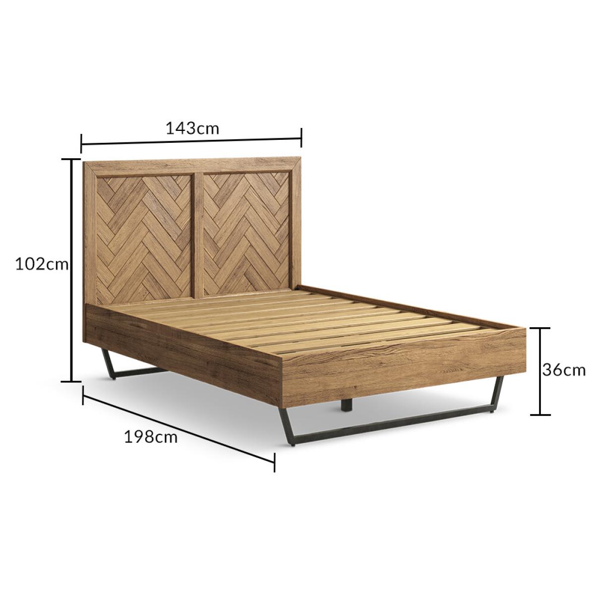 The Herringbone Solid Oak Double Bed is a durable solid oak bed with a high headboard with a Herringbone design and sturdy solid slats.