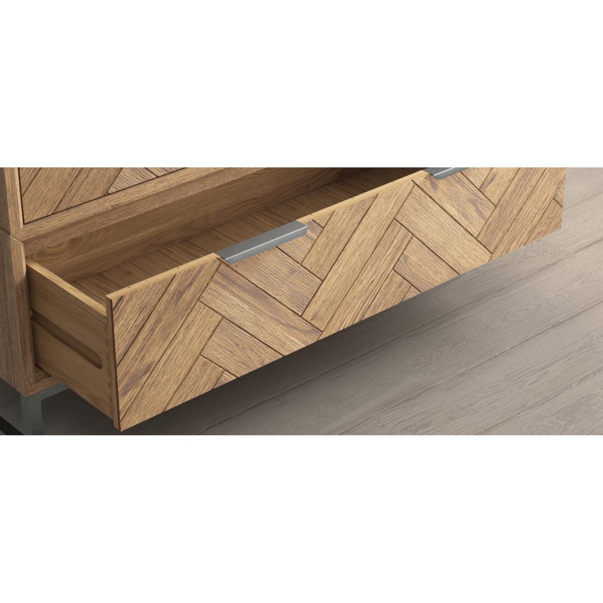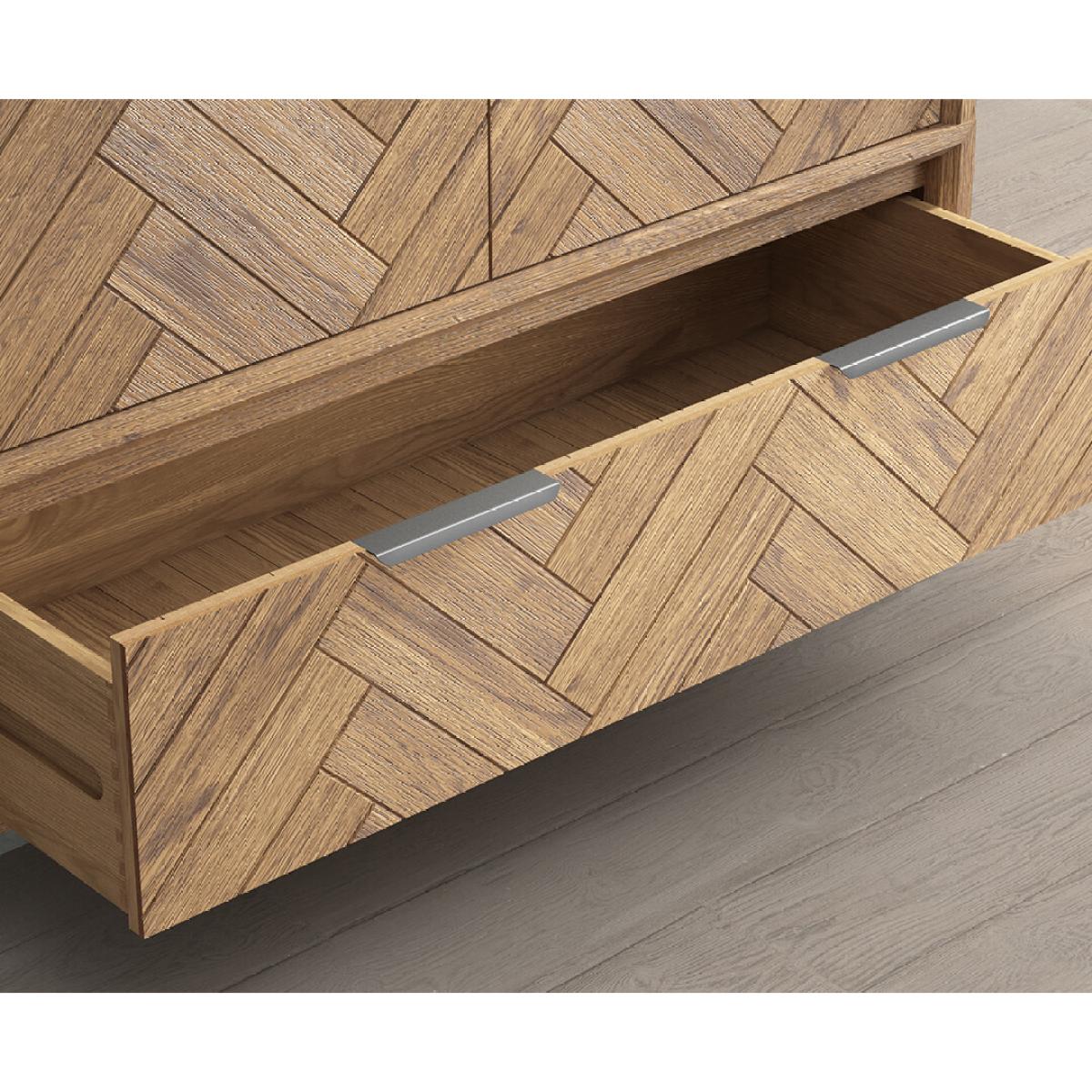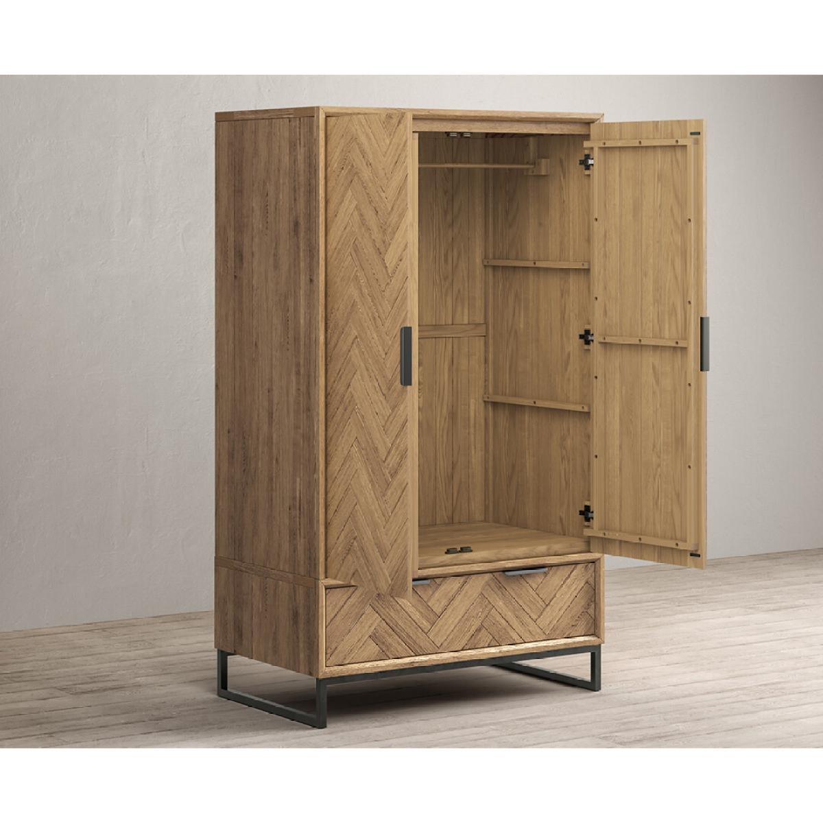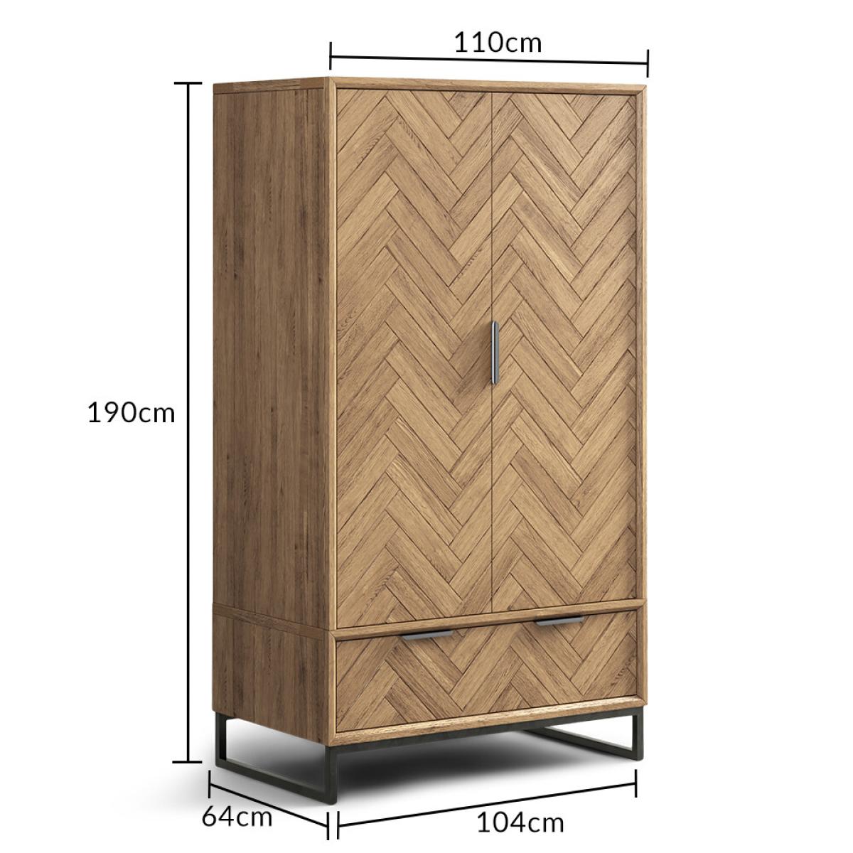 The Herringbone Solid Oak Double Wardrobe is a 100% solid oak double wardrobe with a Herringbone design, complete with a dovetail drawer.