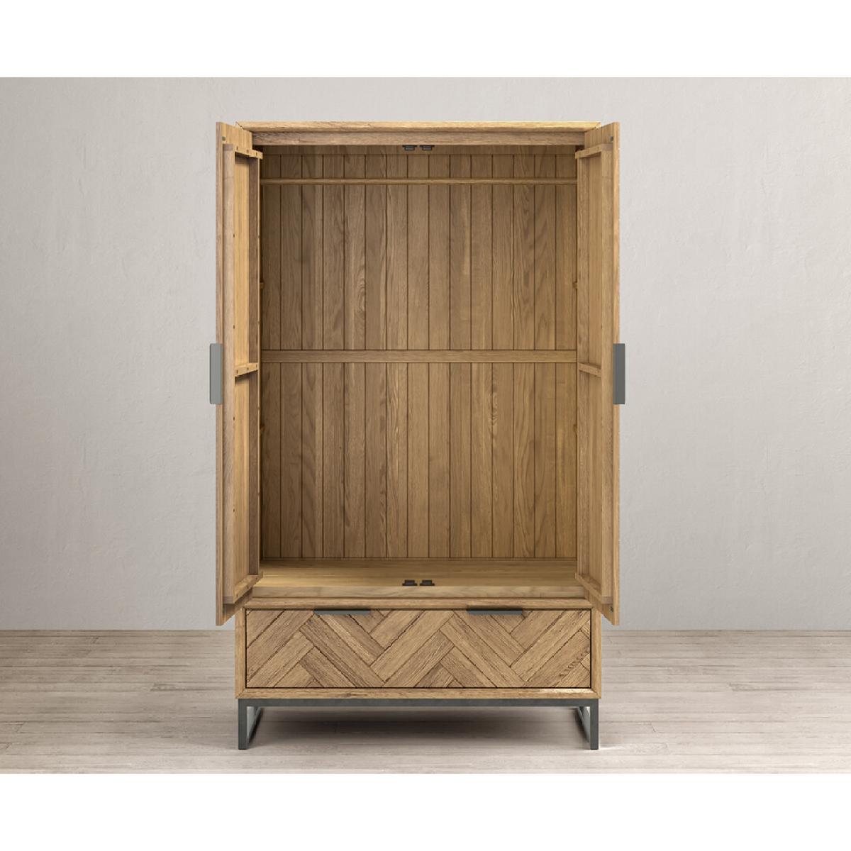 Herringbone Solid Oak Double Wardrobe