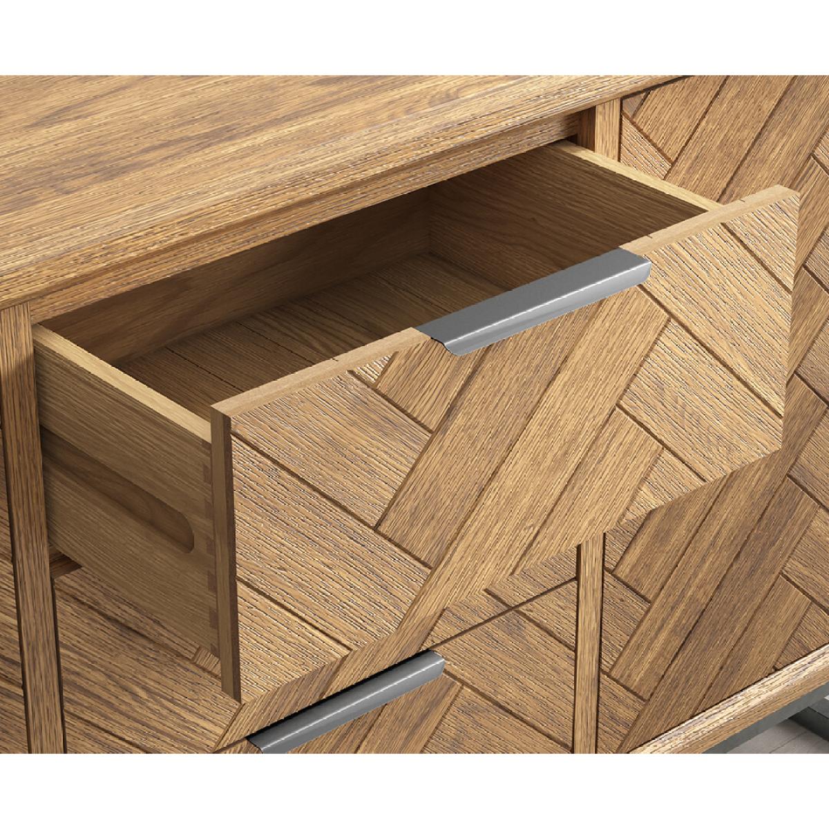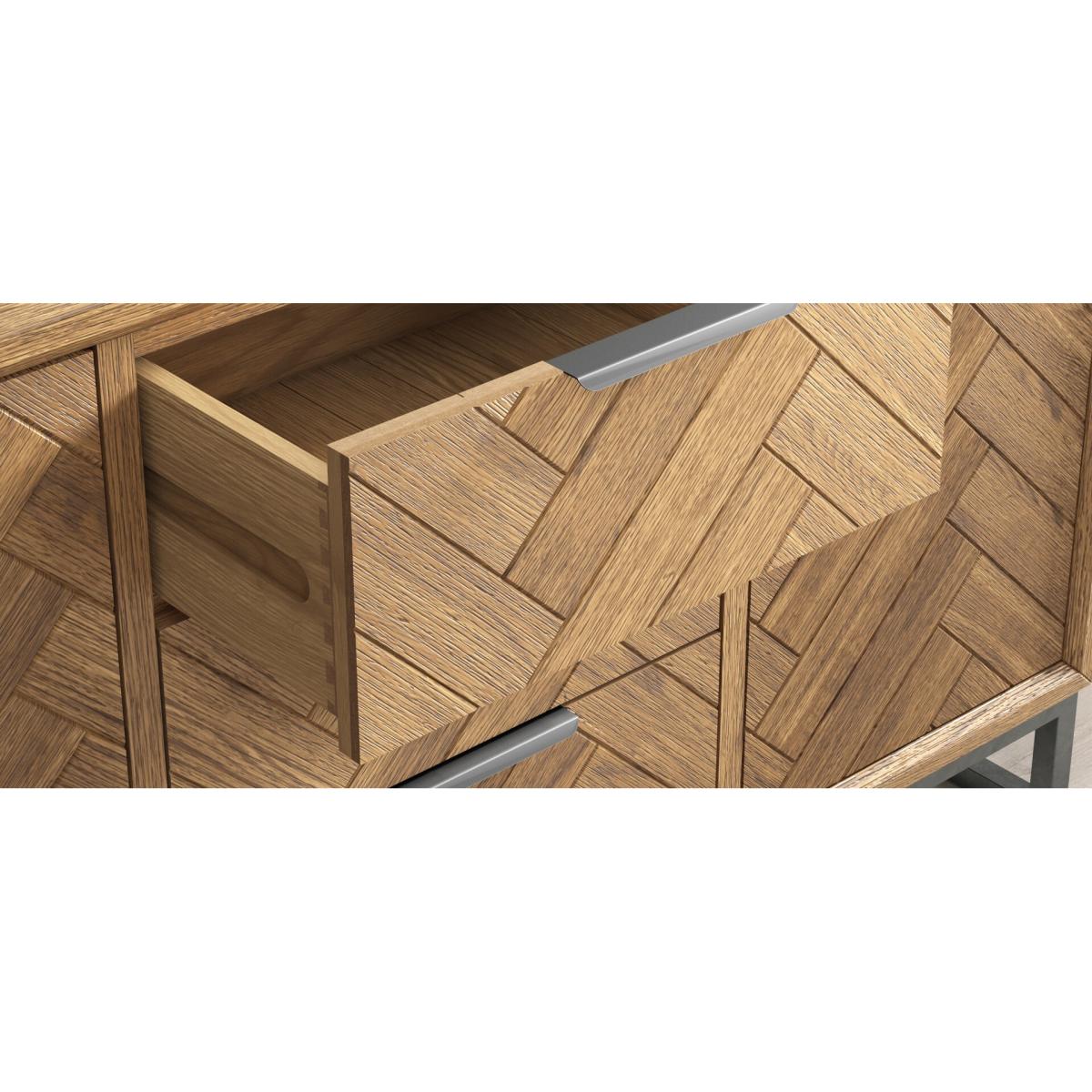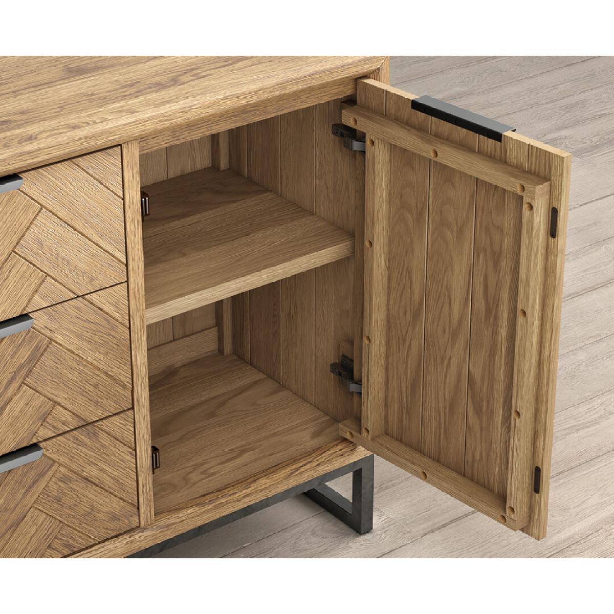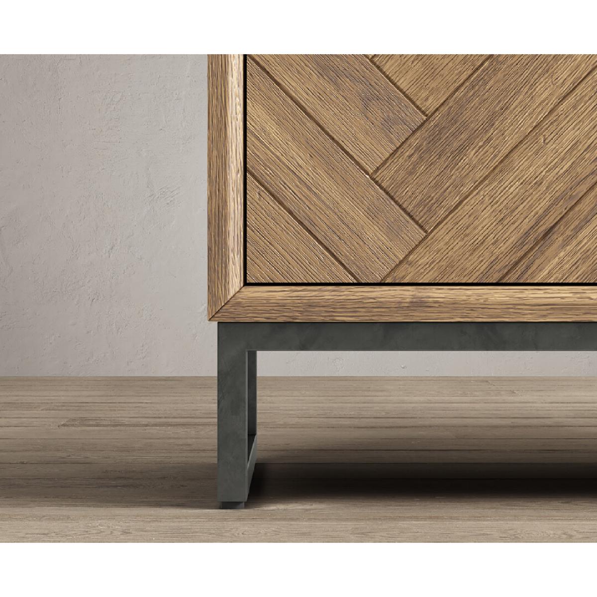 The Herringbone Solid Oak Large Sideboard is crafted from 100% solid oak with a brushed Herringbone finish and features two cupboards and dovetail drawers.