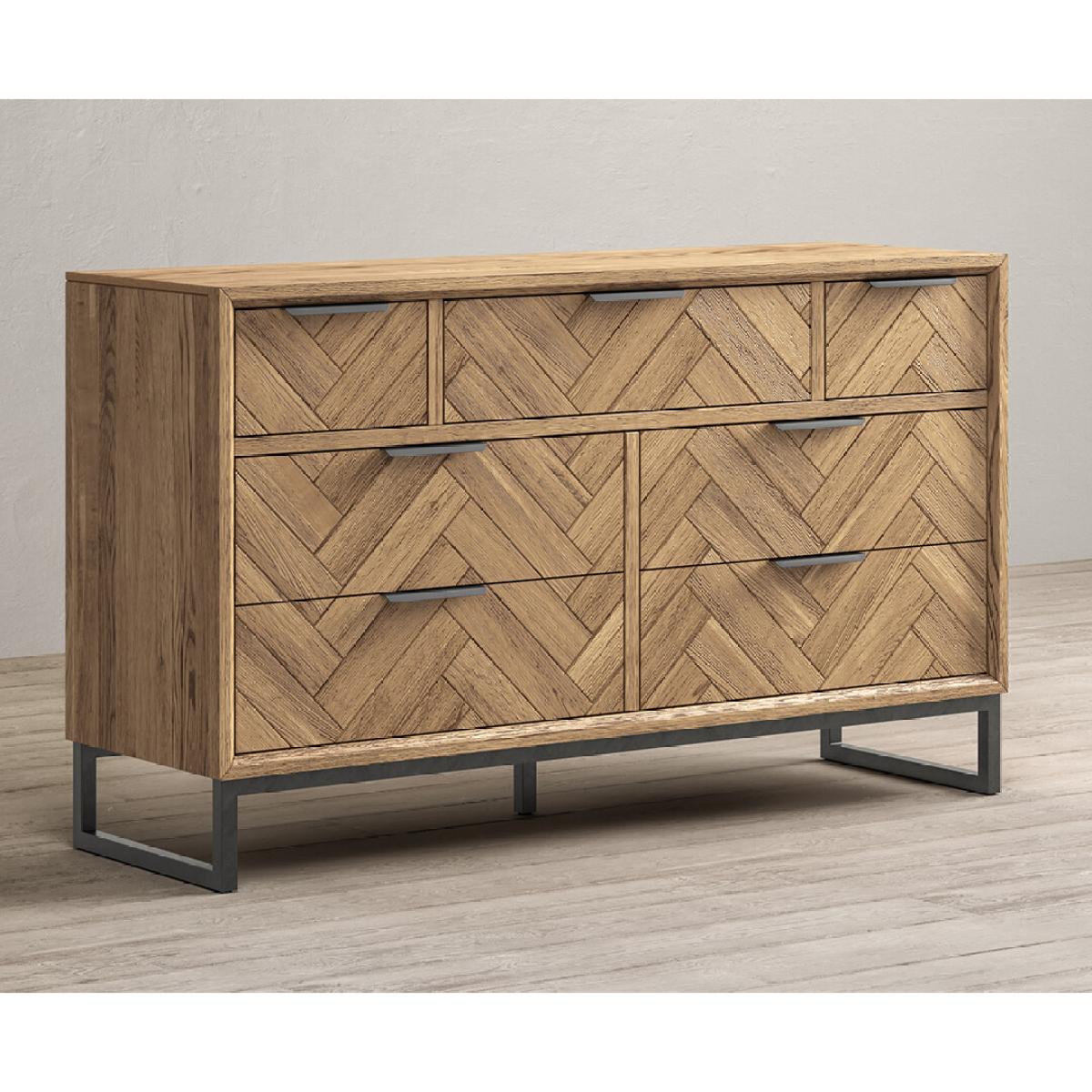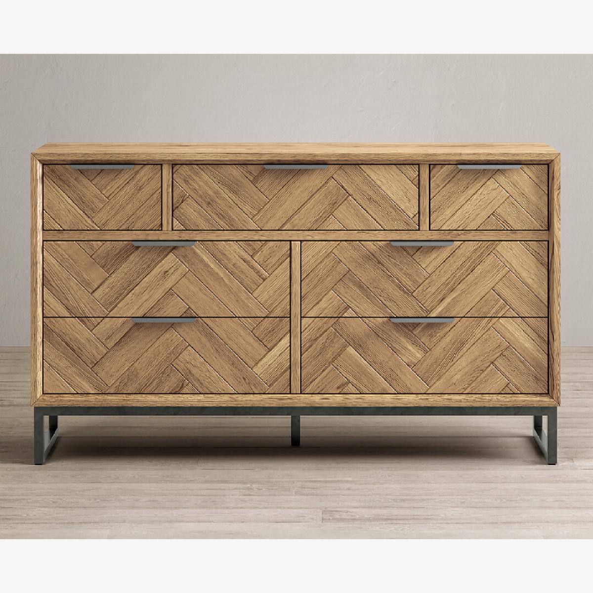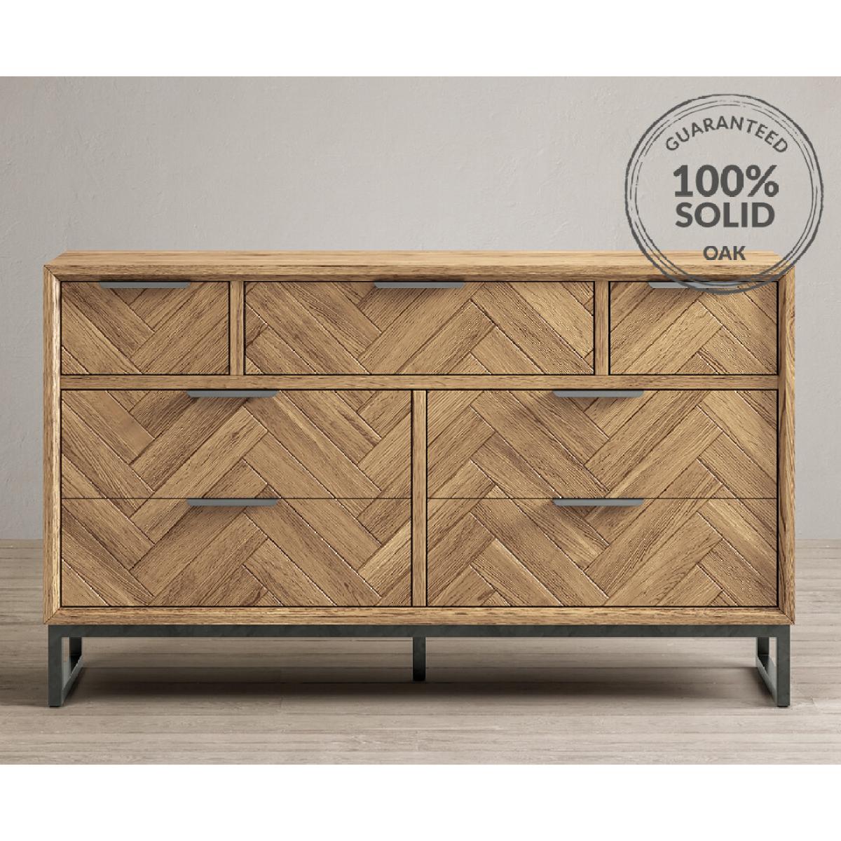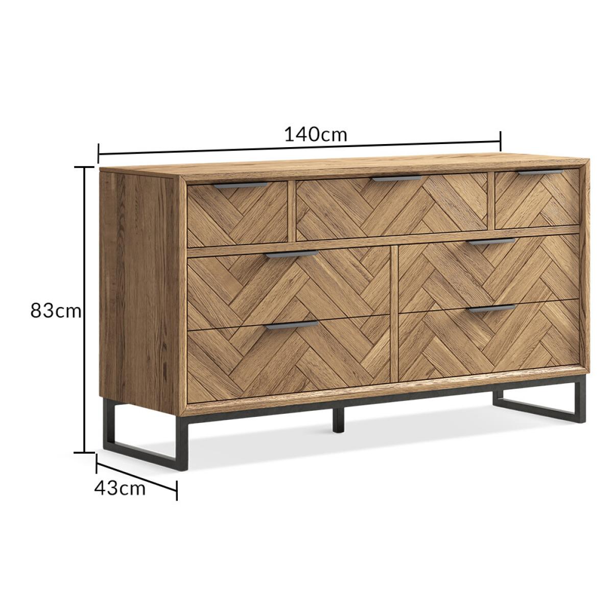 The Herringbone Solid Oak Wide Chest Of Drawers is a large 100% solid oak chest of drawers with a stunning Herringbone design.