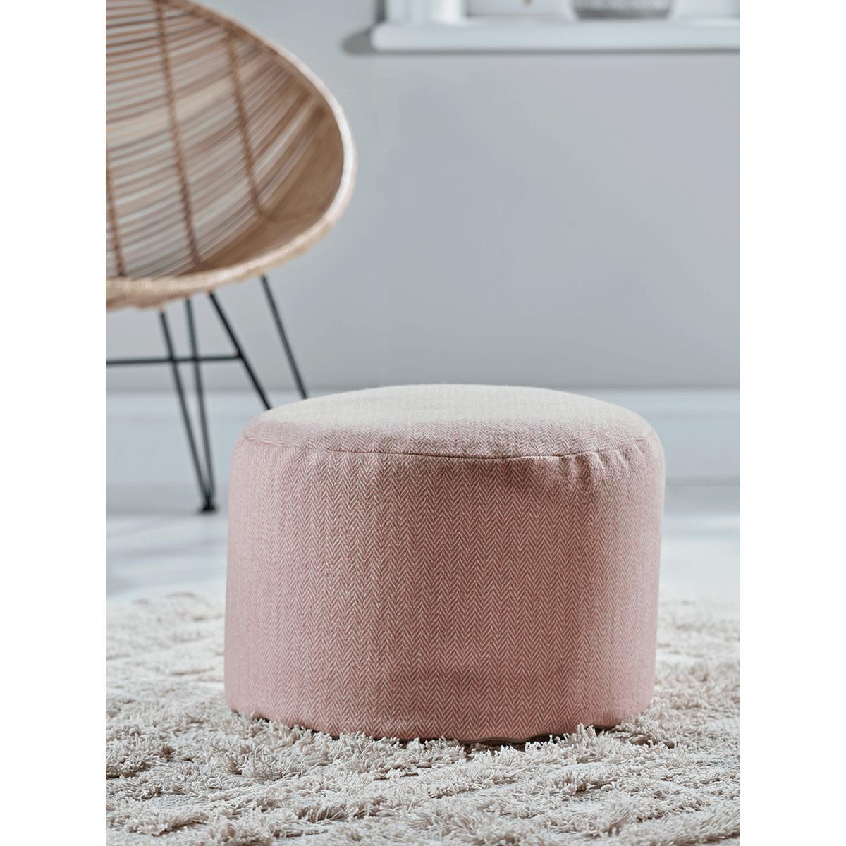 Herringbone Wool Pouffe - Blush