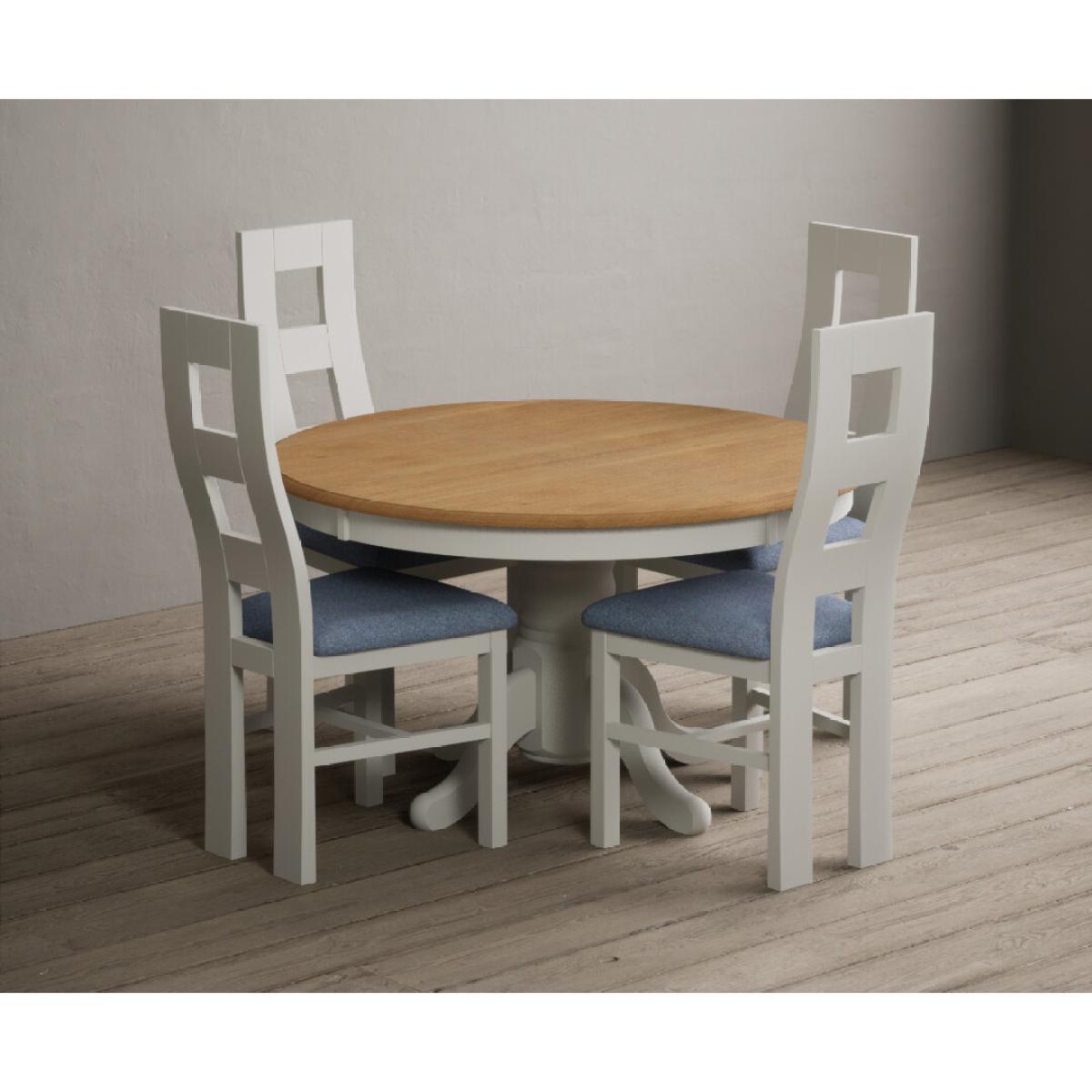 Hertford 120cm Fixed Top Oak and Signal White Painted Dining Table with 4 Linen Painted Chairs
