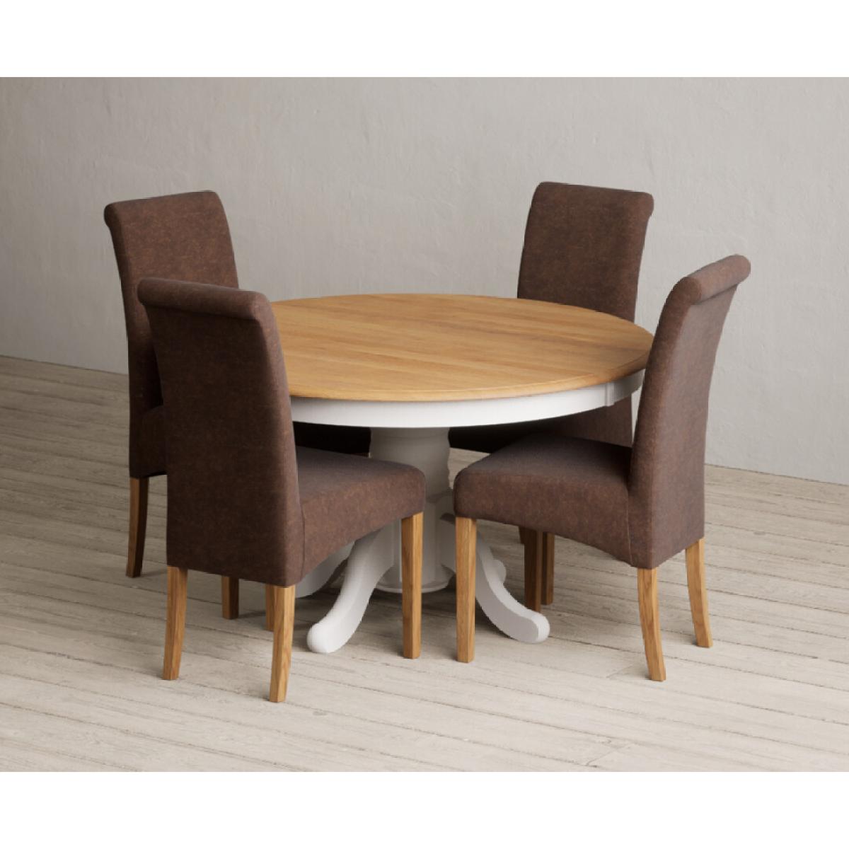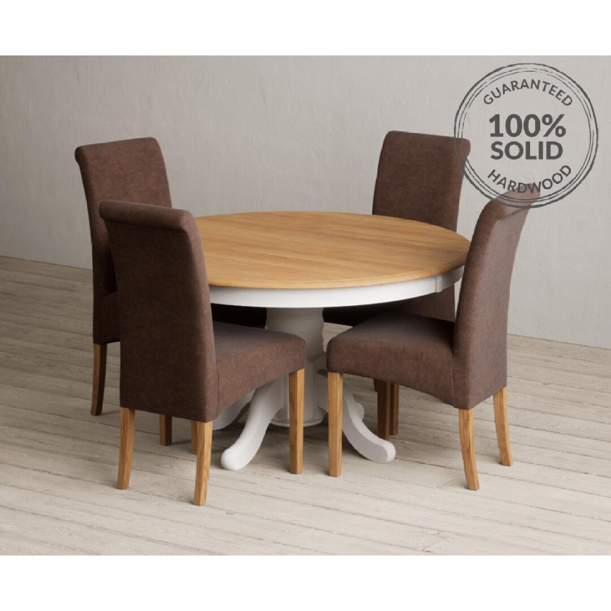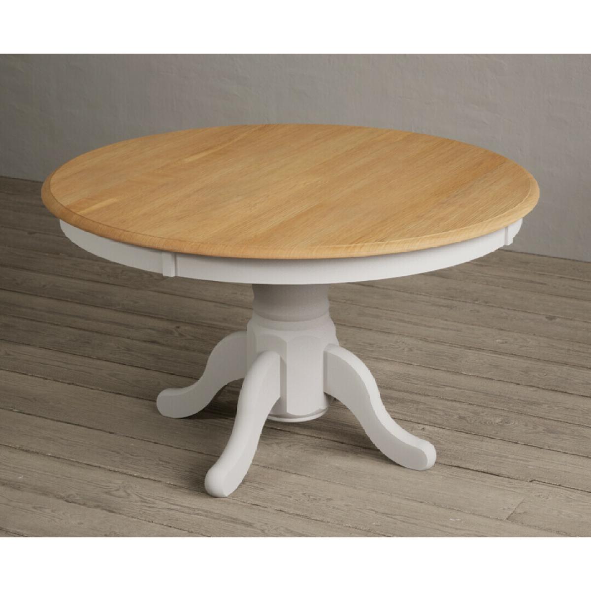 Hertford 120cm Fixed Top Oak and Soft White Painted Round Pedestal Table with Scroll Back Chairs