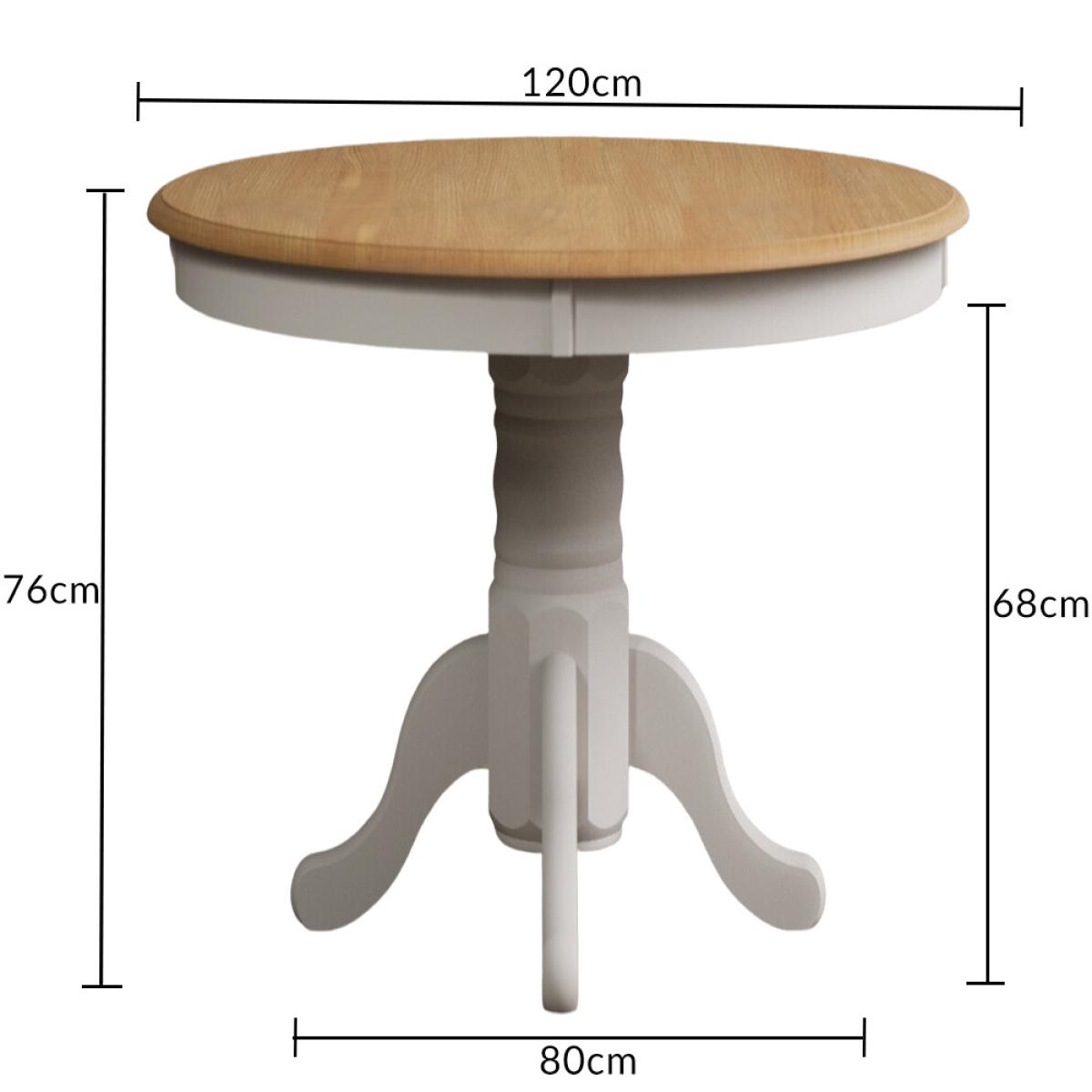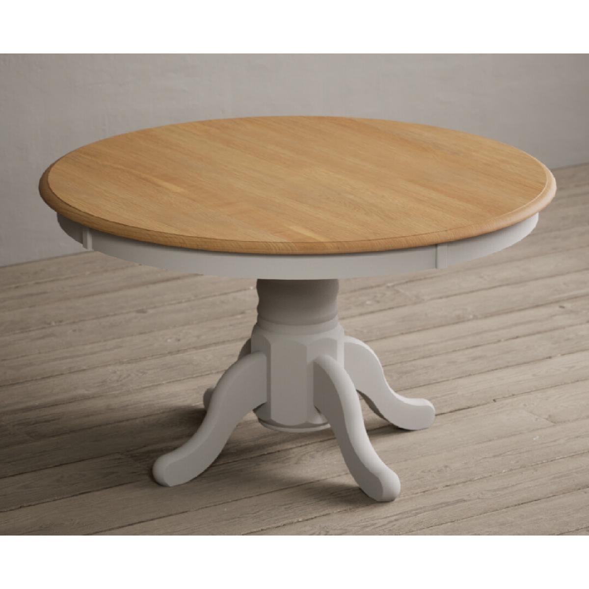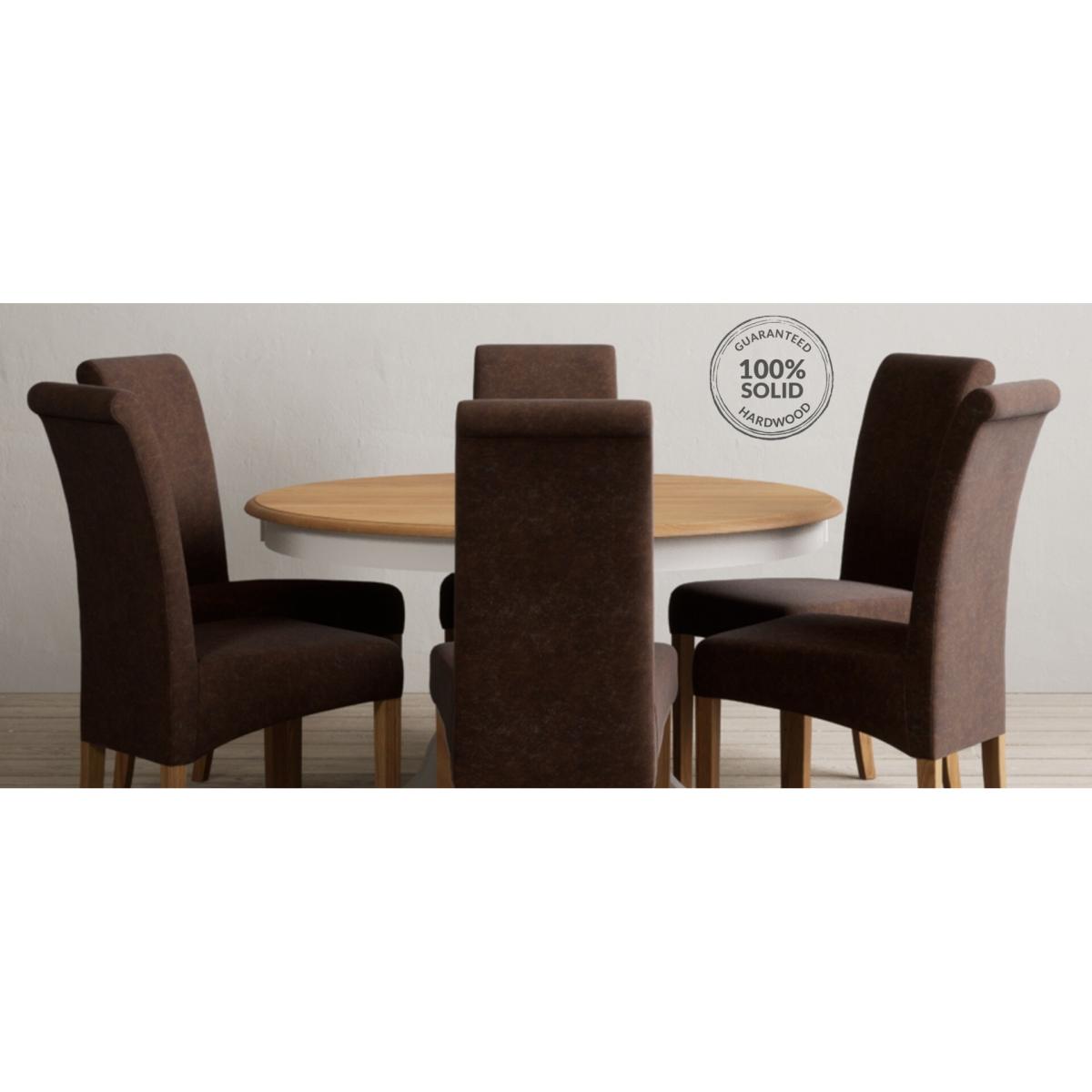 Hertford 120cm Fixed Top Oak and Soft White Painted Round Pedestal Table with Scroll Back Chairs