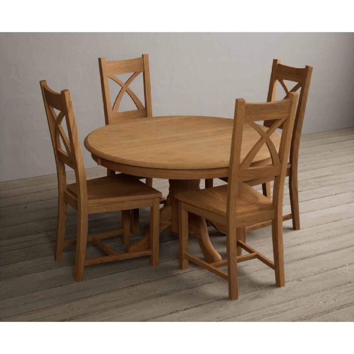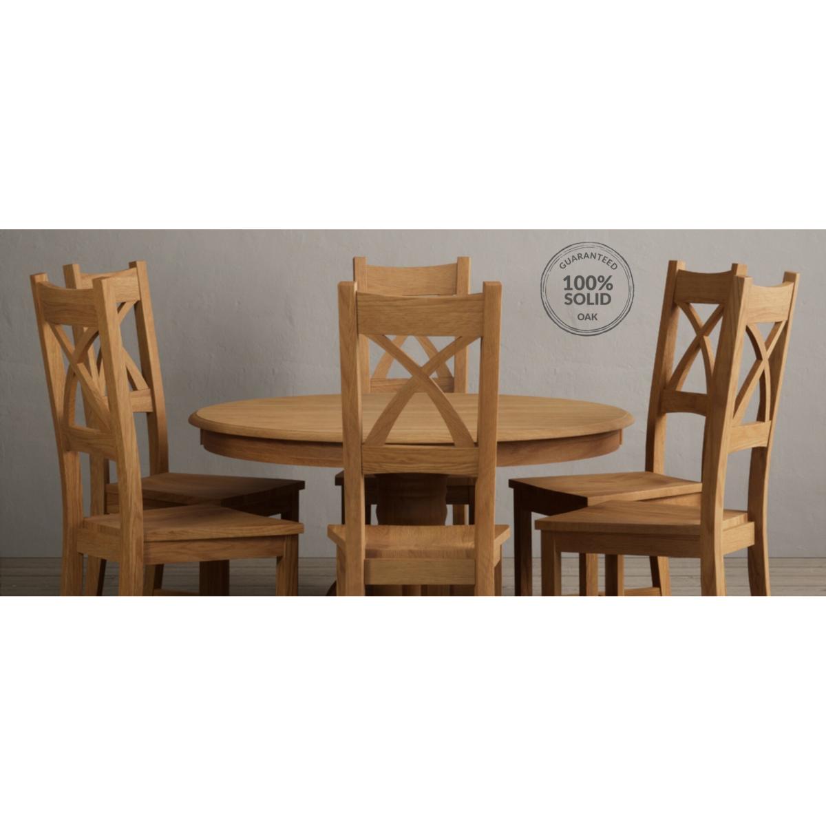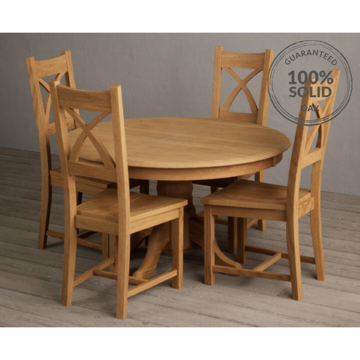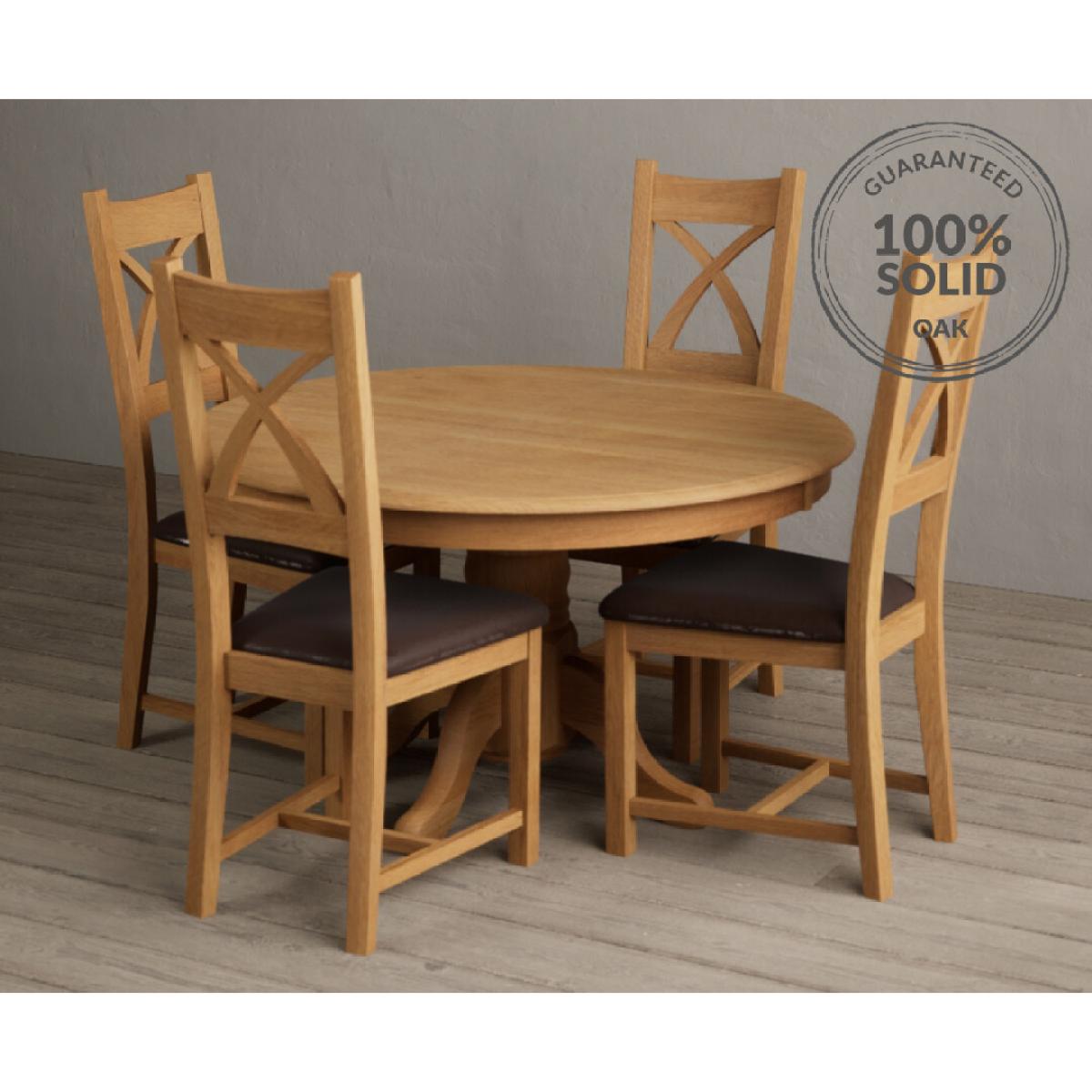 Hertford 120cm Fixed Top Solid Oak Round Pedestal Table With 4 Brown X Back Chairs