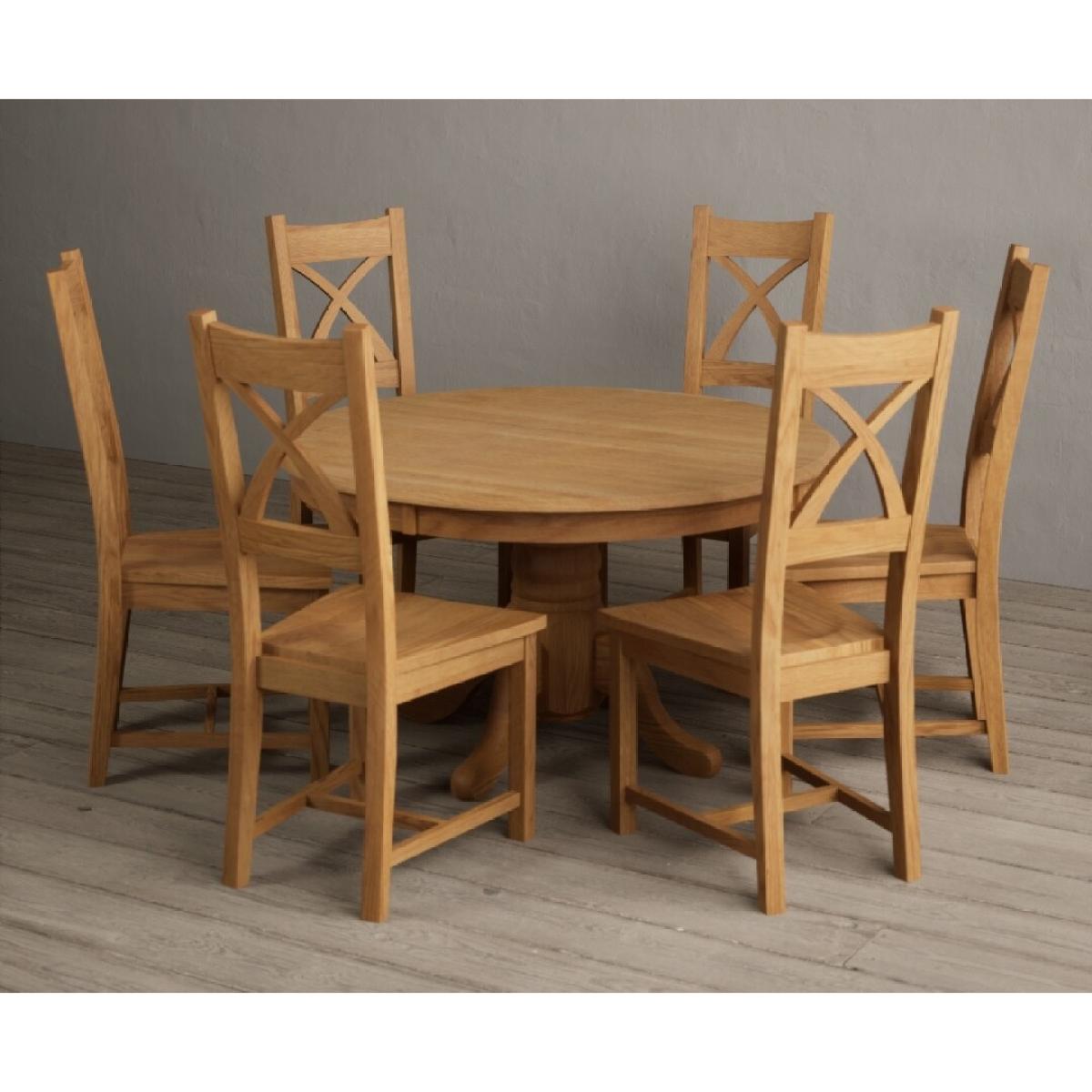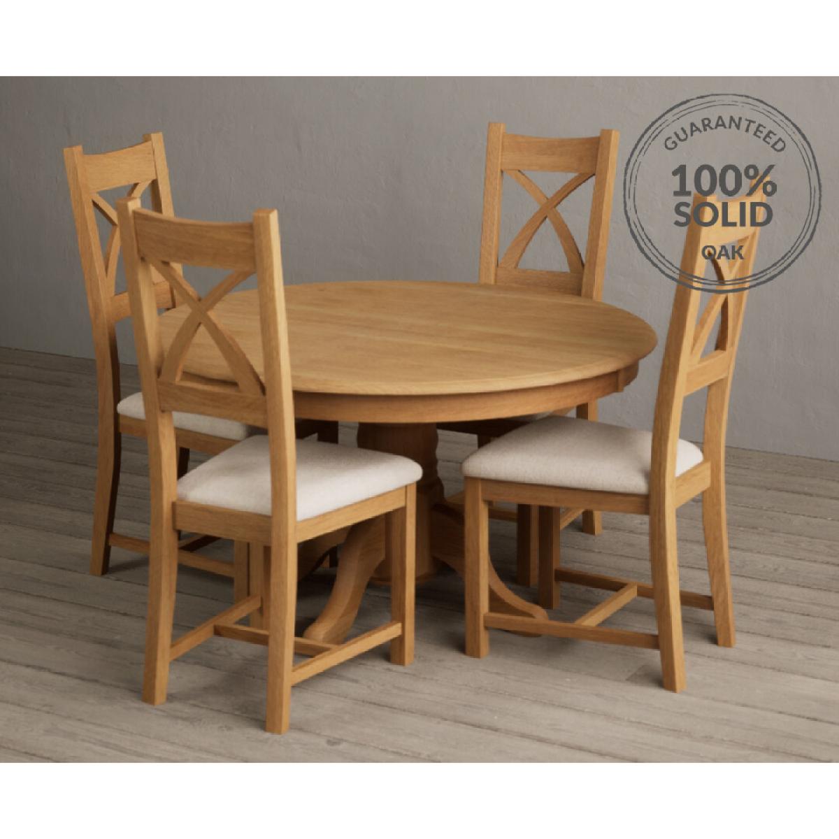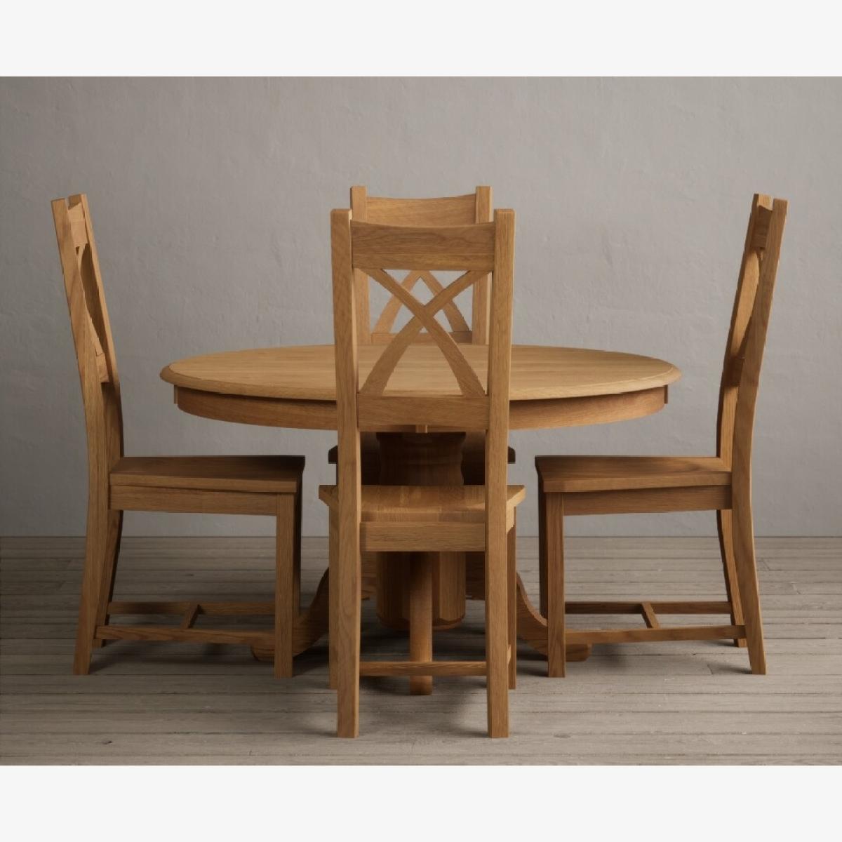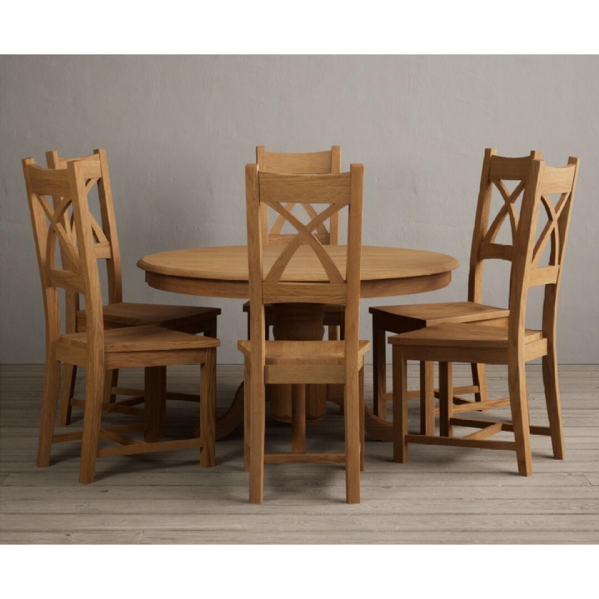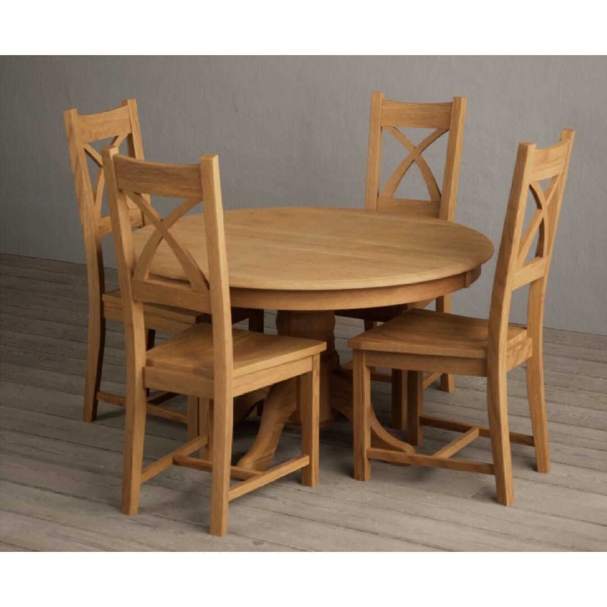 Hertford 120cm Fixed Top Solid Oak Round Pedestal Table With 4 Brown X Back Chairs
