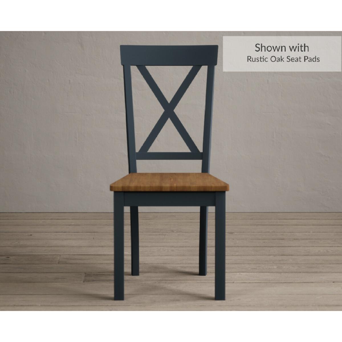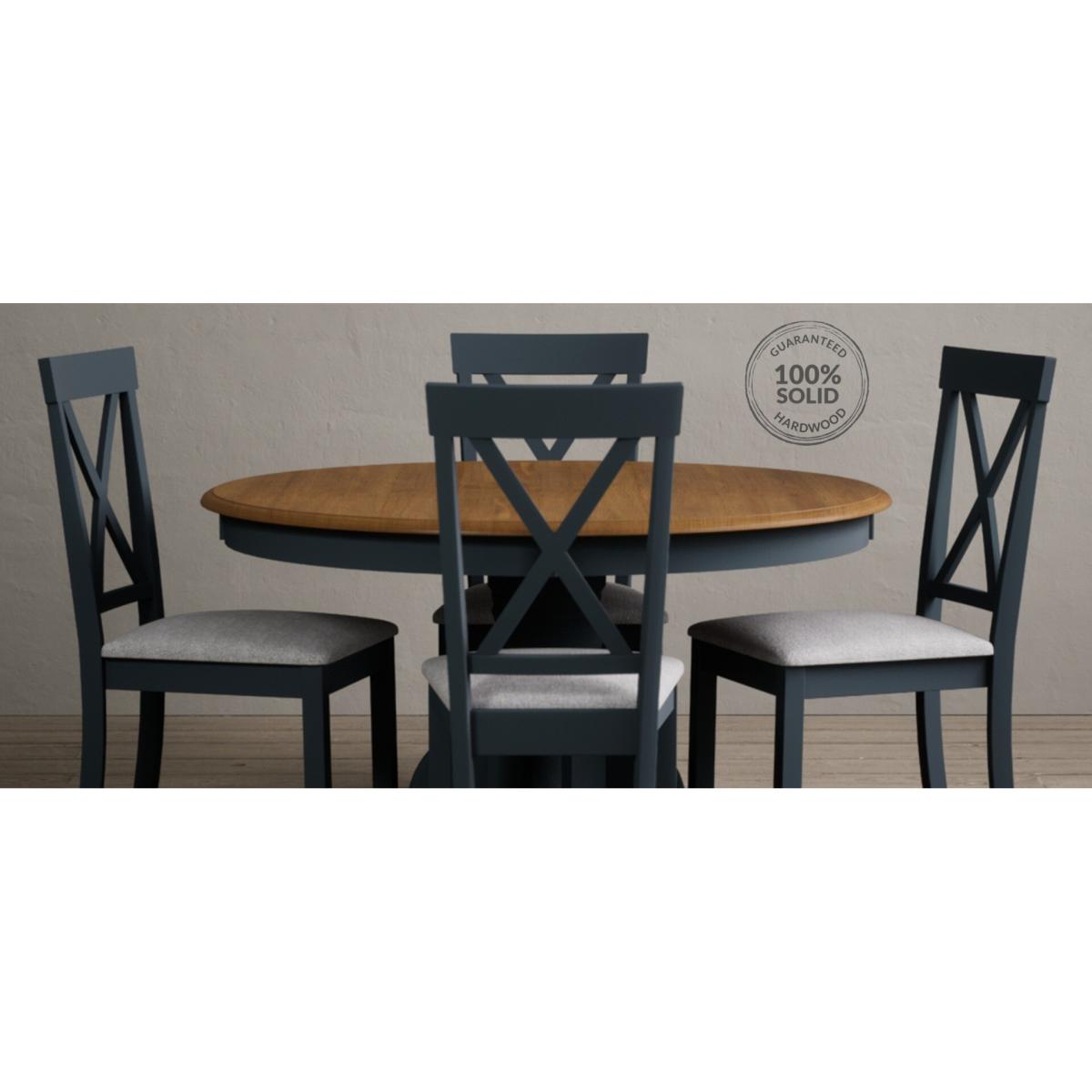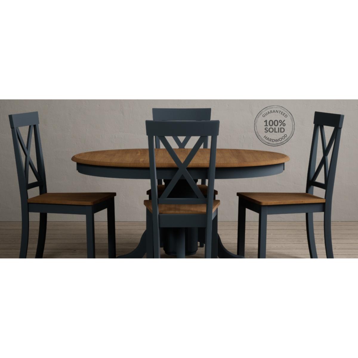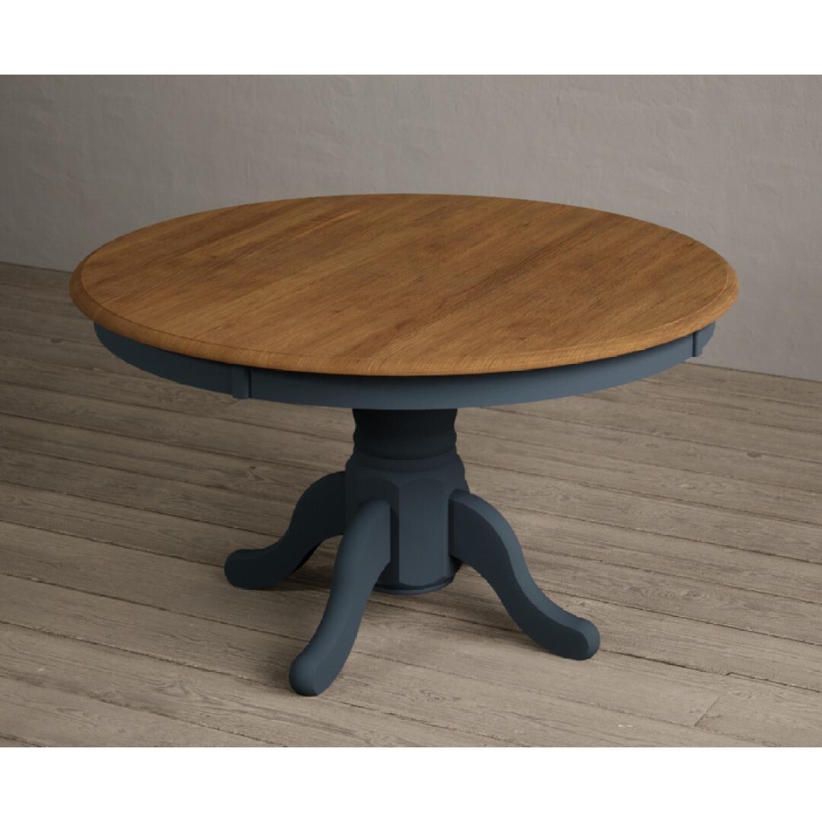 Hertford 120cm Oak and Dark Blue Painted Round Pedestal Table With 6 Blue Hertford Chairs