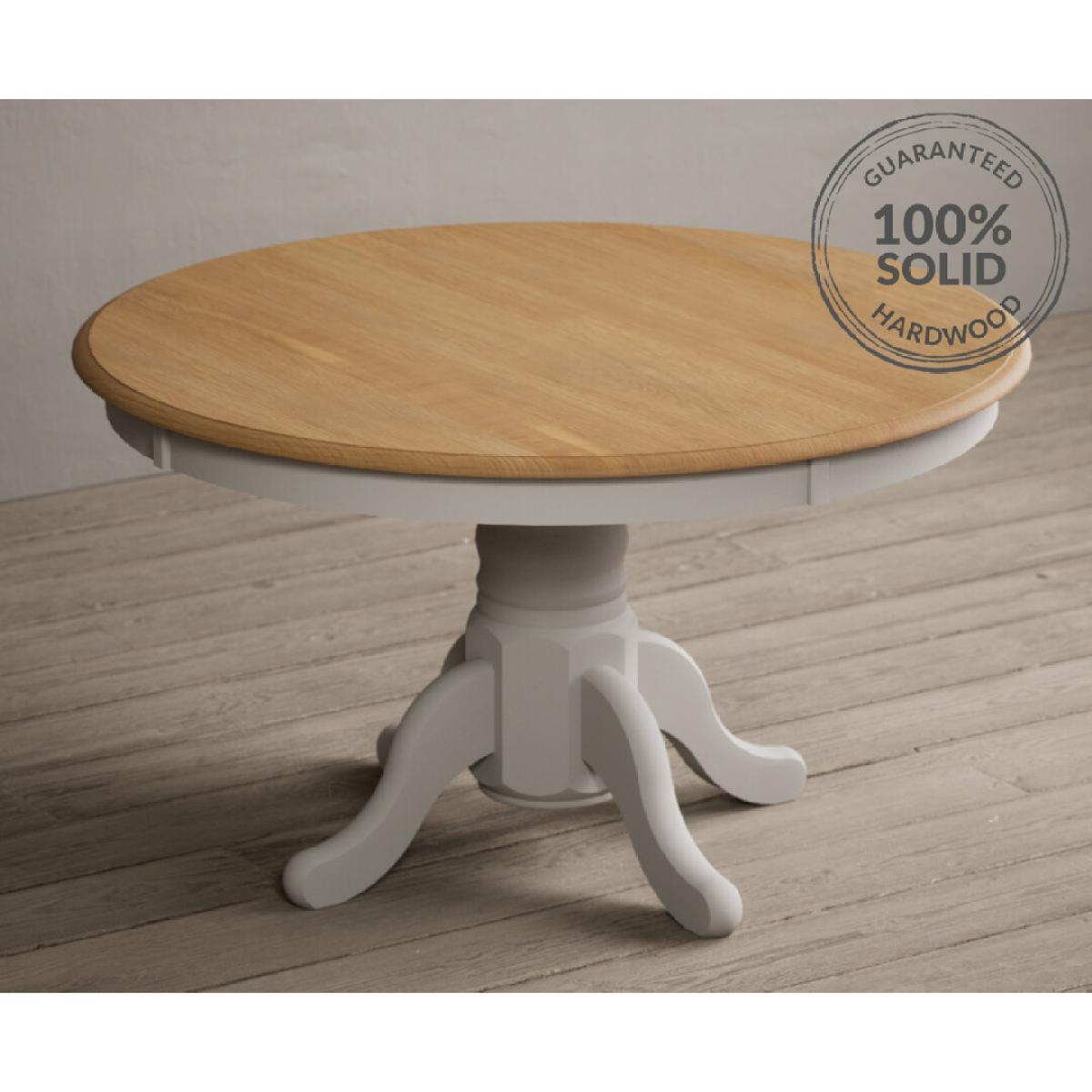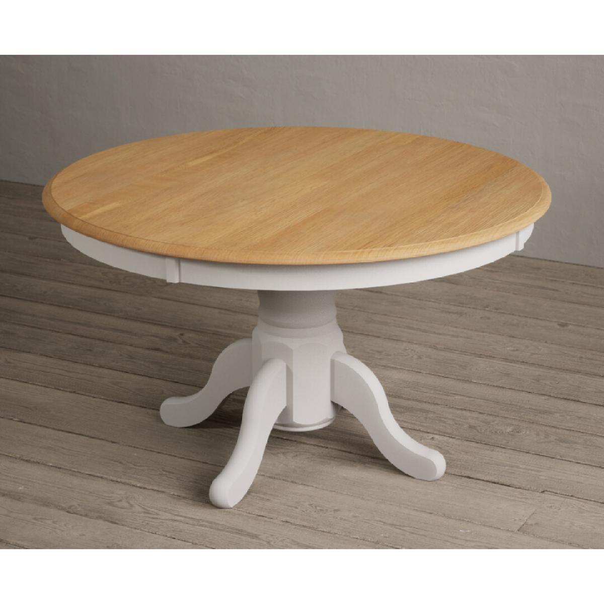 The Hertford 120cm Oak and Soft White Painted Dining Table features a 100% solid oak table top and sturdy soft white painted pedestal.