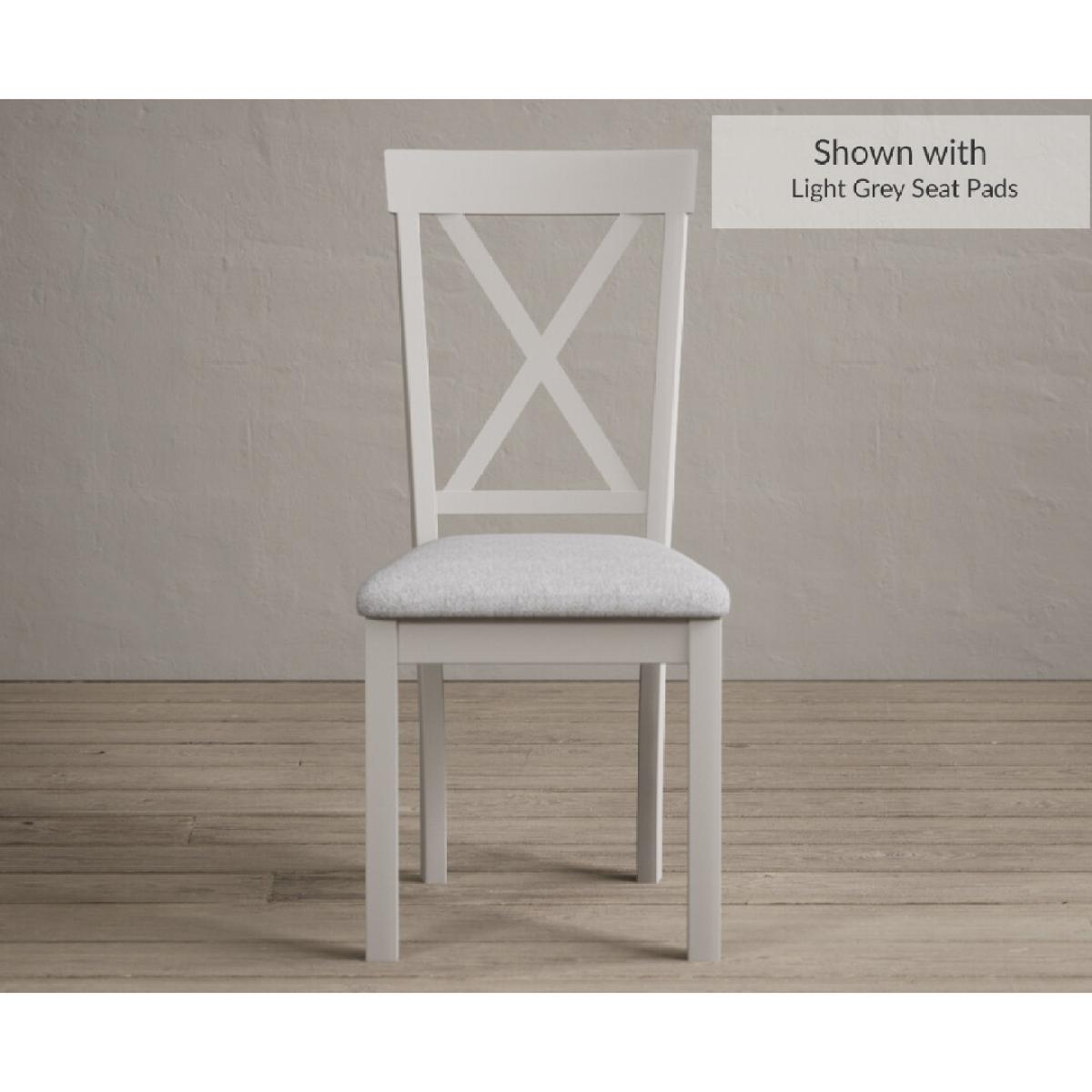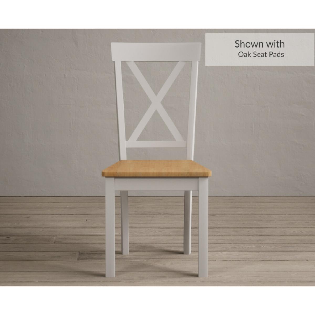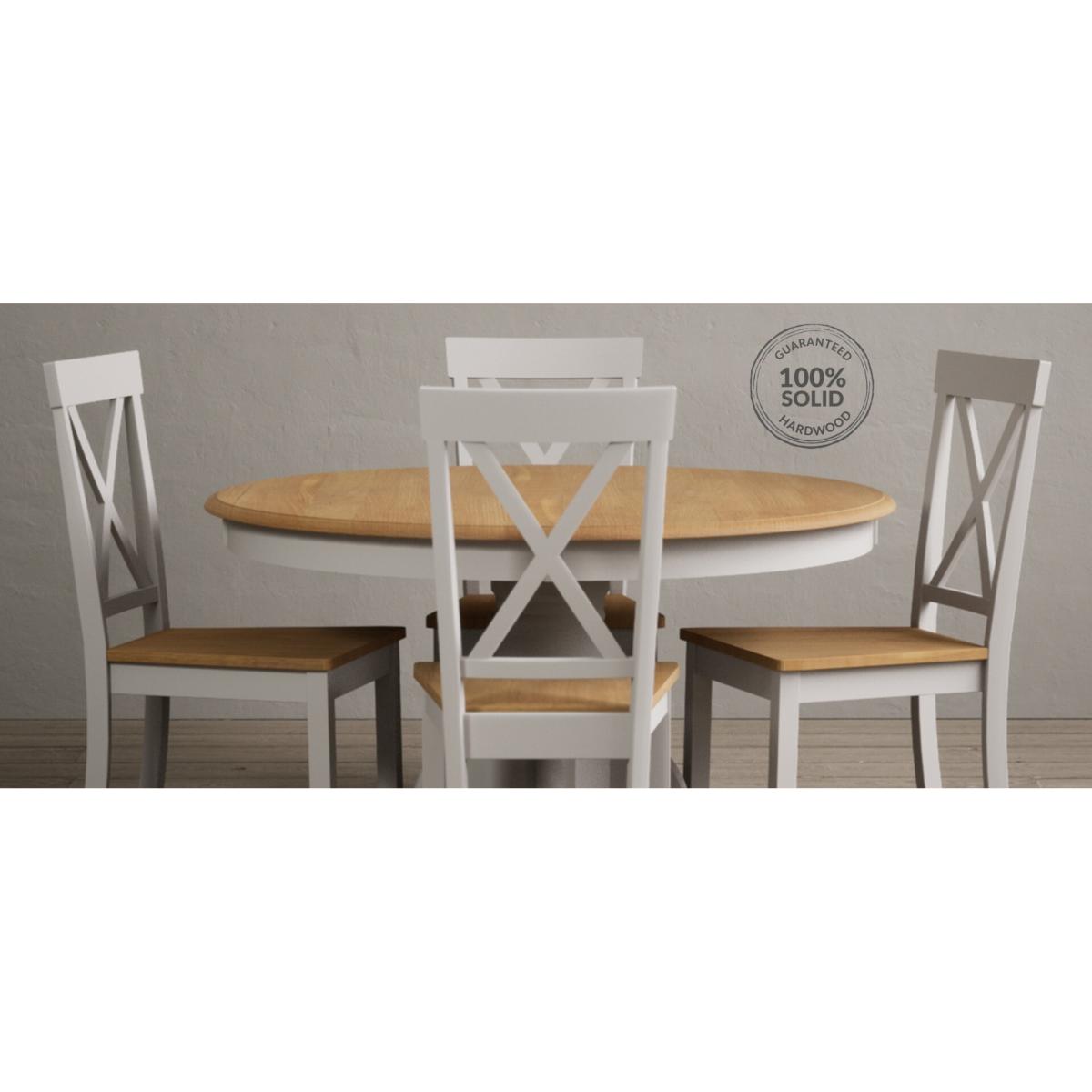 Hertford 120cm Oak and Soft White Painted Round Pedestal Table With 6 Linen Hertford Chairs