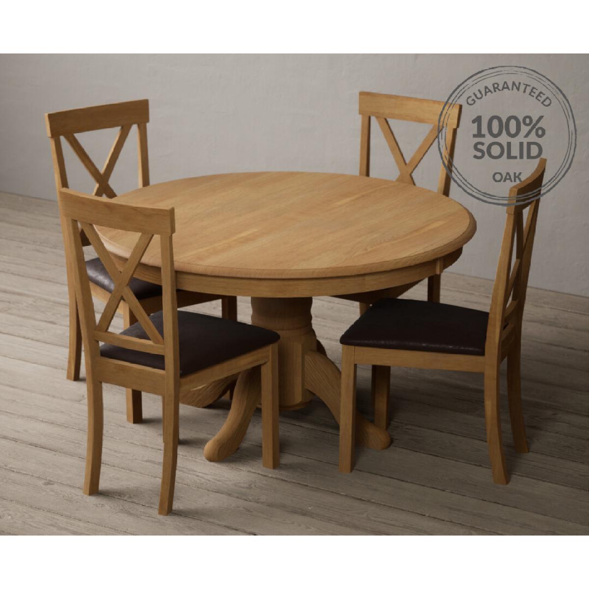 The Hertford 120cm Solid Oak Round Pedestal Table with Hertford Chairs is a 100% solid oak dining table set with a pedestal dining table and matching chairs.
