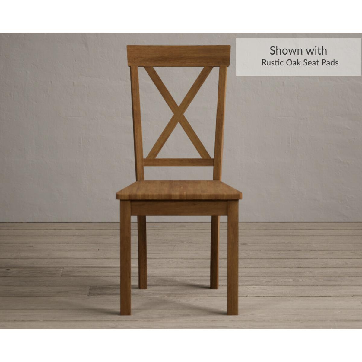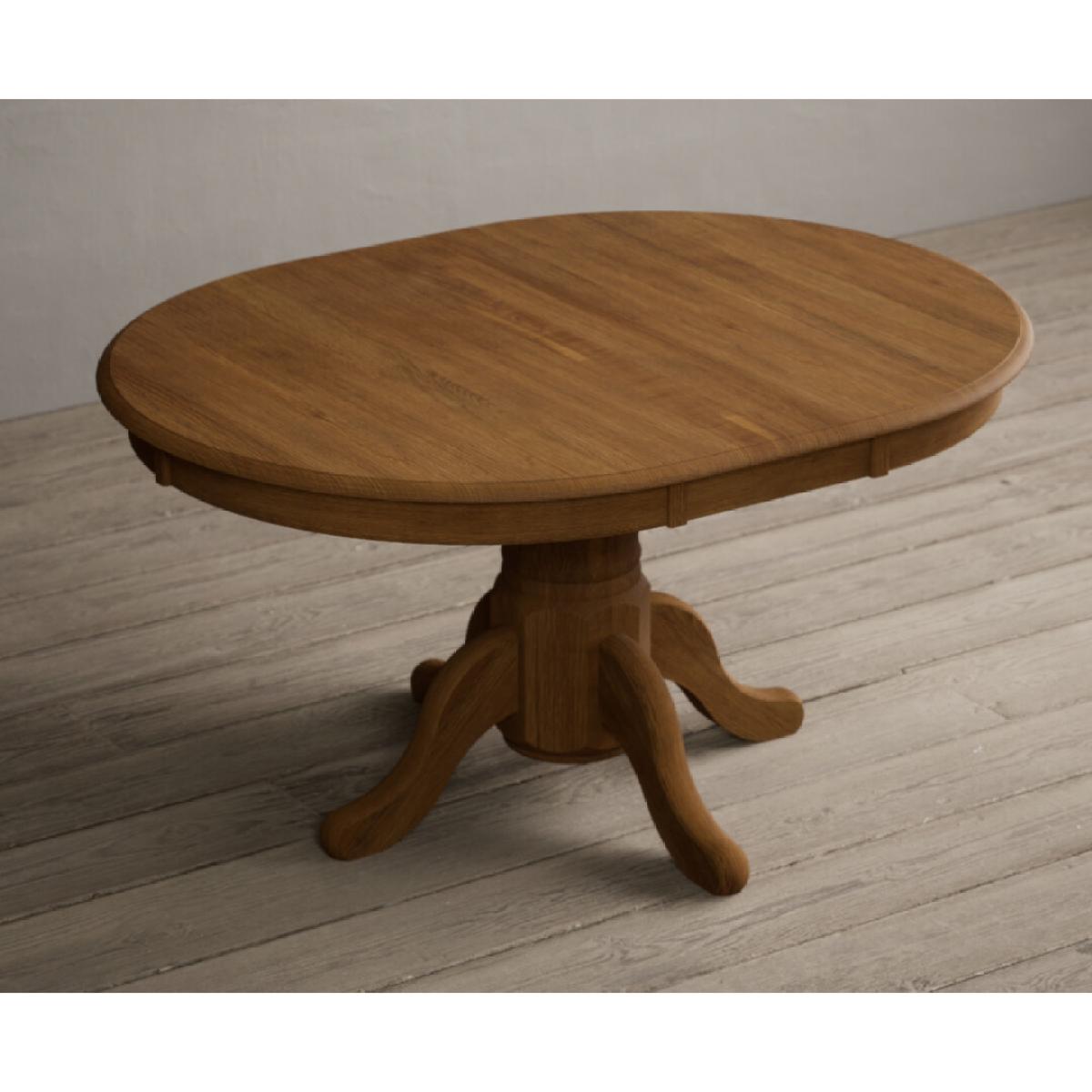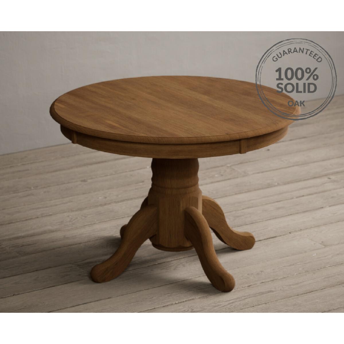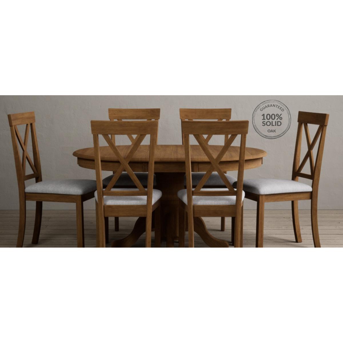 The Hertford Rustic Oak Pedestal Extending Dining Table with Hertford Chairs features a rustic 100% solid oak dining table and matching chairs.