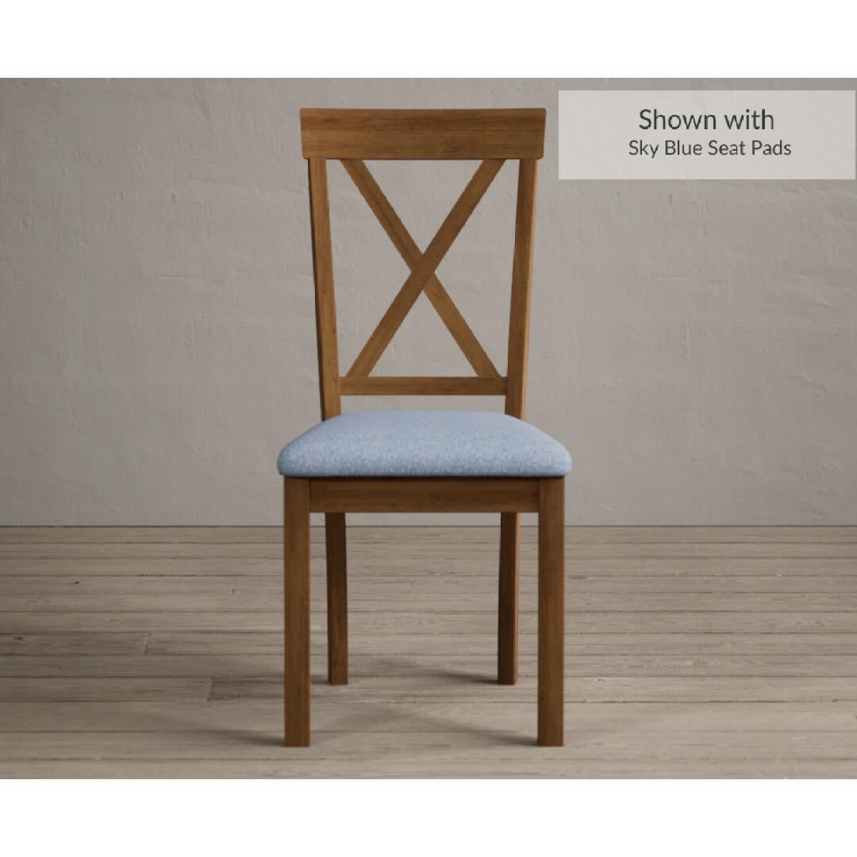 Hertford Rustic Oak Pedestal Extending Dining Table With 4 Blue Hertford Chairs