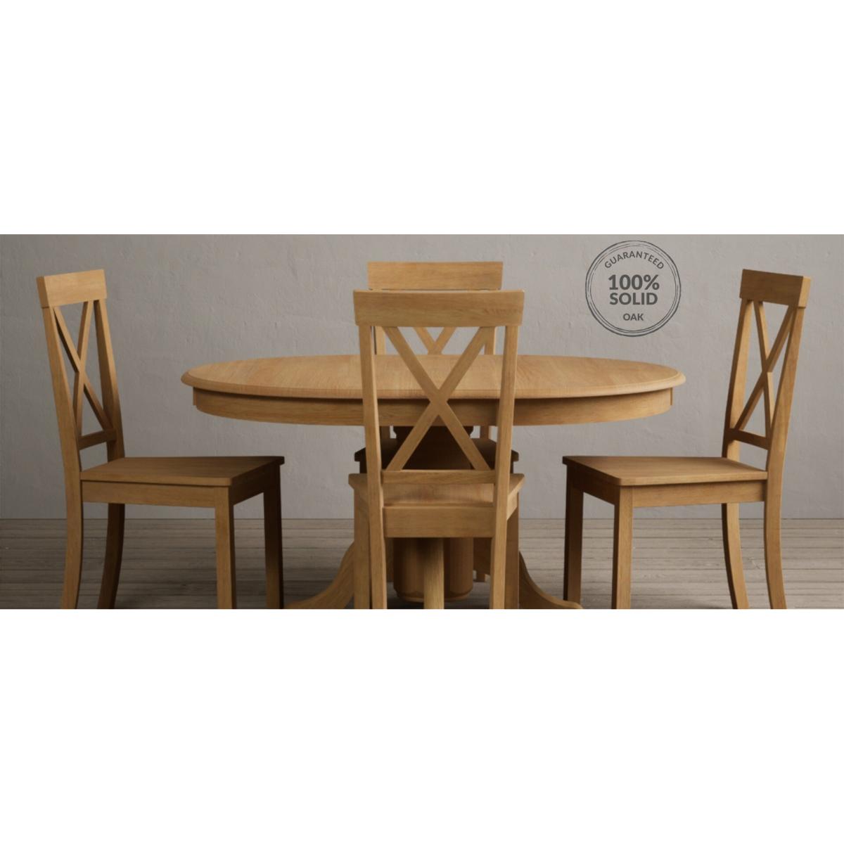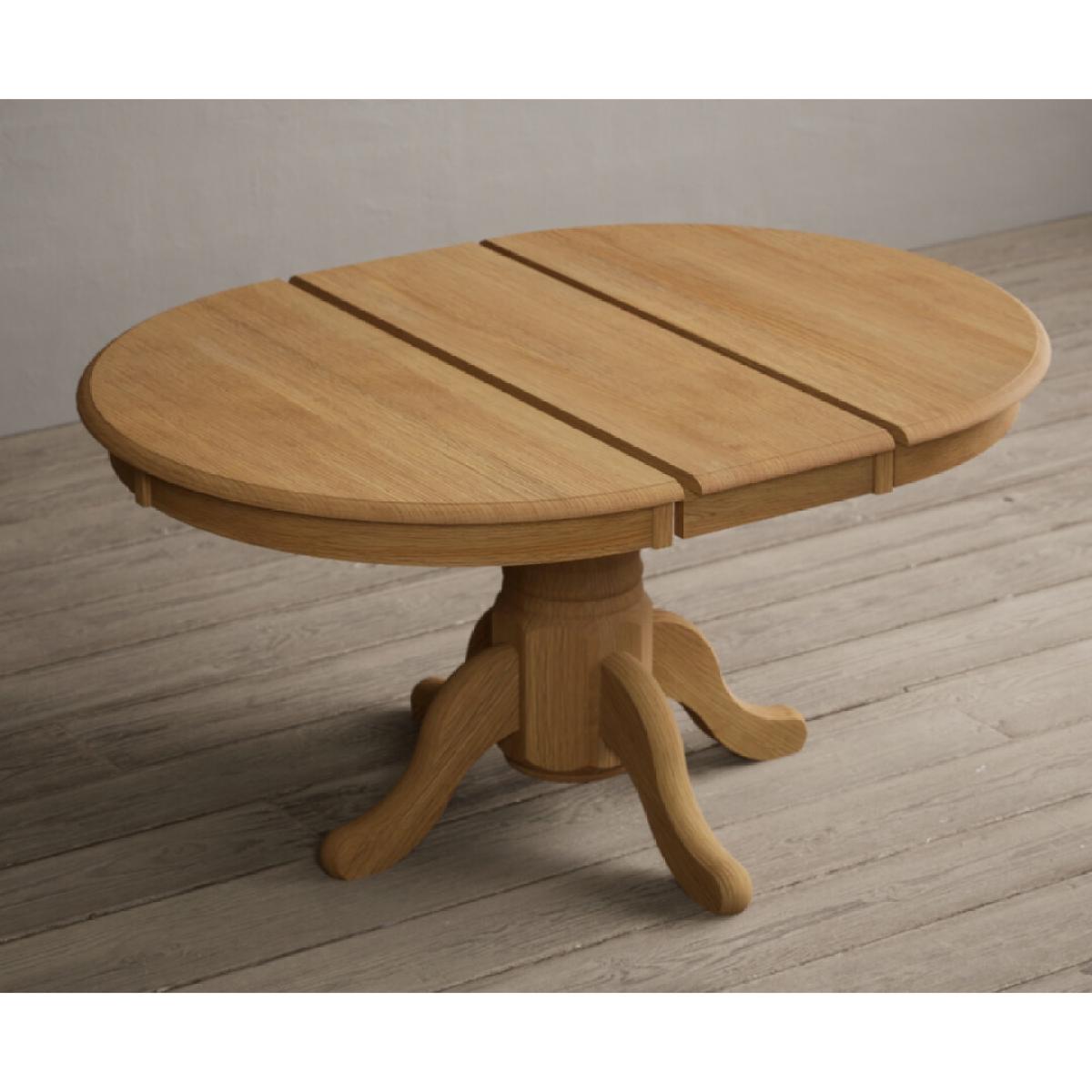 The Hertford Solid Oak Extending Pedestal Dining Table is crafted from 100% solid oak, with a natural finish, inbuilt extension feature and sturdy pedestal base.