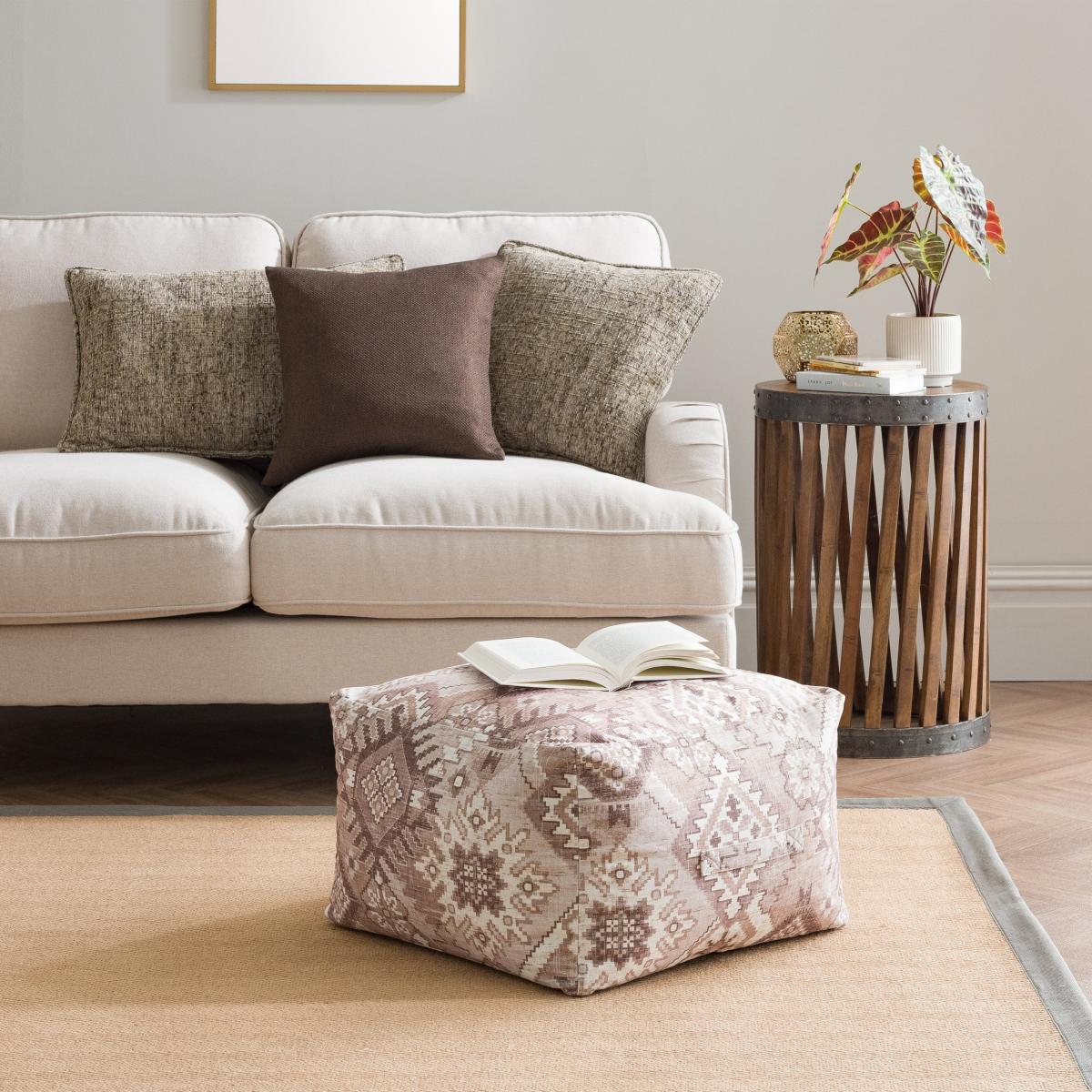 I love the Hester Kilim Cube Pouffe for its versatility and texture, making it a great addition to both modern and bohemian interiors. Its understated kilim pattern adds visual interest without overwhelming the space, making it perfect as extra seating or a footrest. I recommend placing it in a living room alongside a sofa for casual, flexible seating, or using it as a centrepiece in a sunny corner to add warmth and pattern. Practical styling tips include pairing it with other layered textiles like throws and cushions or using it as an unconventional side table with a tray on top. Its compact size and neutral tones make it easy to move around and adapt to different settings, adding character and functionality in equal measure.